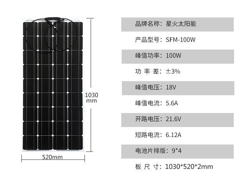 Panel Fotovoltaico Solar Monocristalino Zixi 18V100W Semiflexible Panel de Carga Batería Alta Potencia y Eficiente
