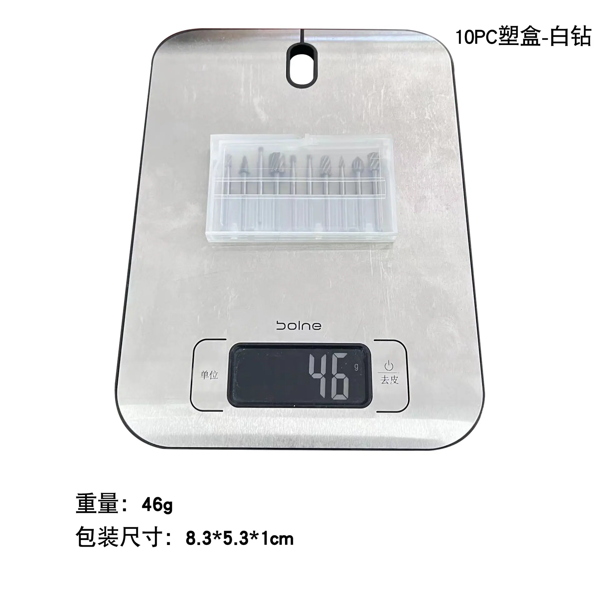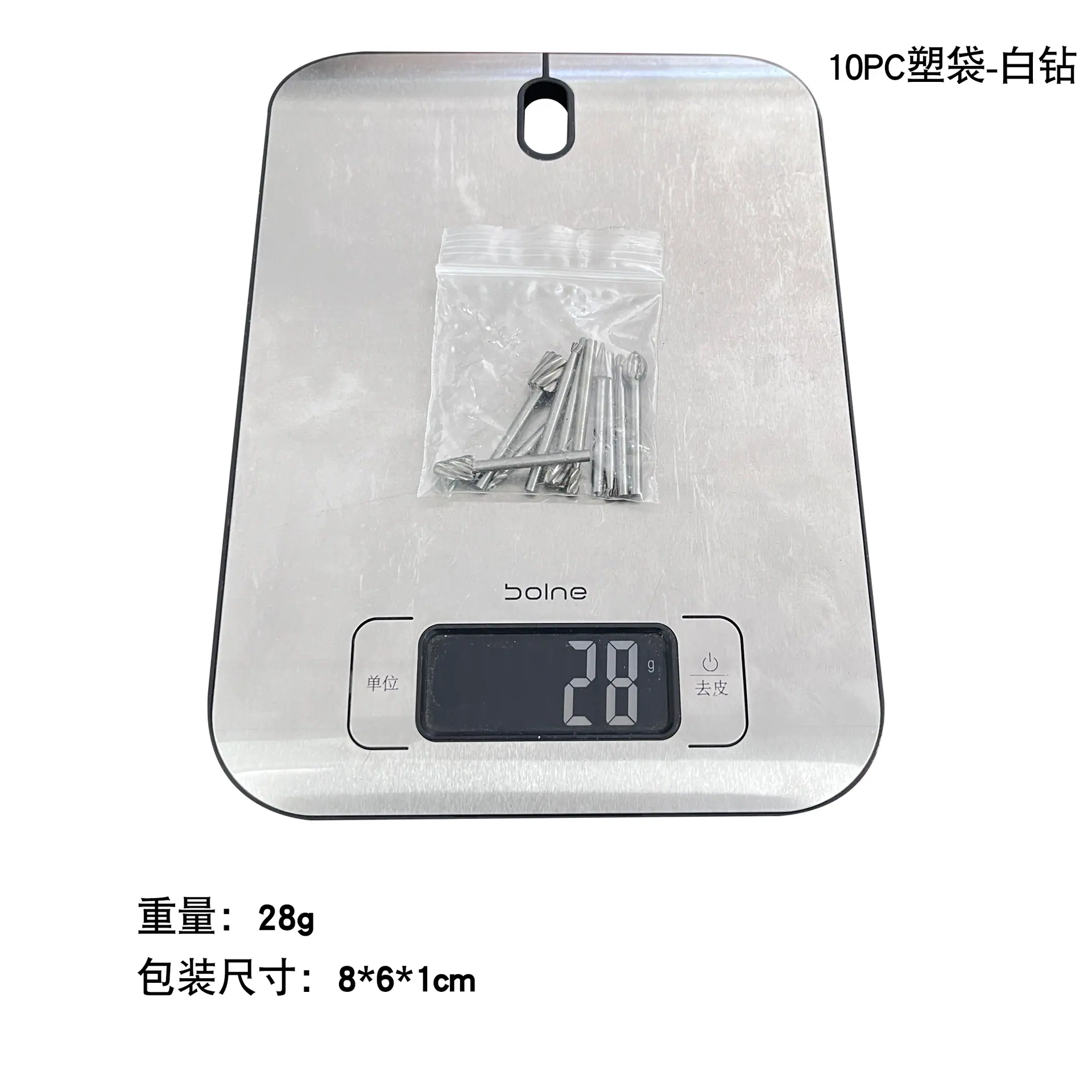 10 piezas lima rotativa de aguja fina (diamante blanco)--bolsa de plástico 28 gramos