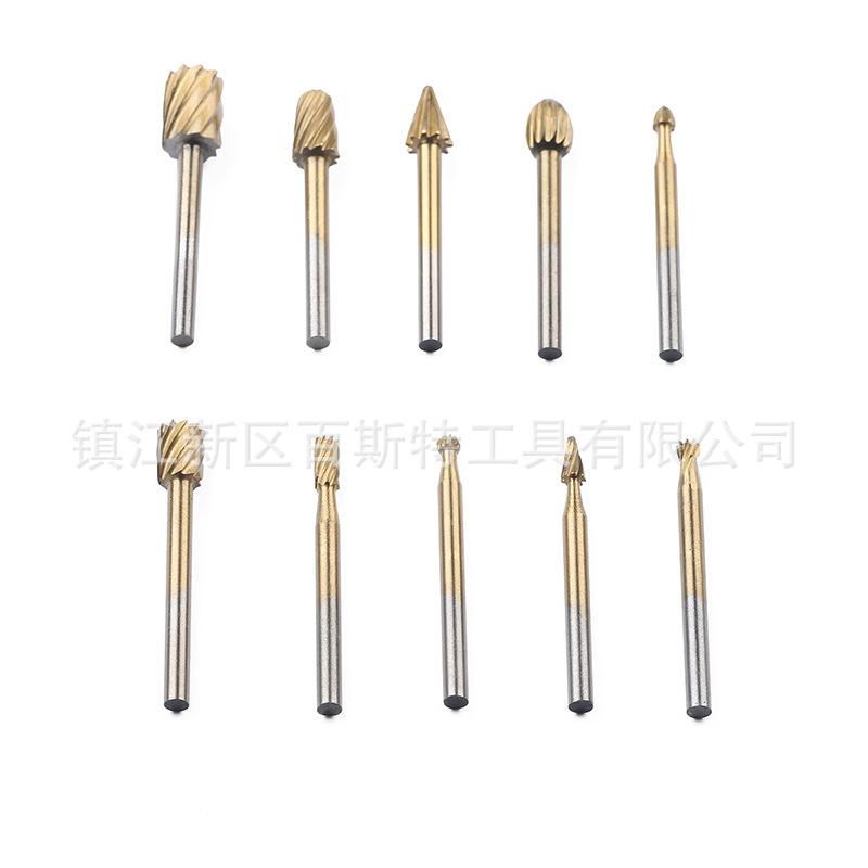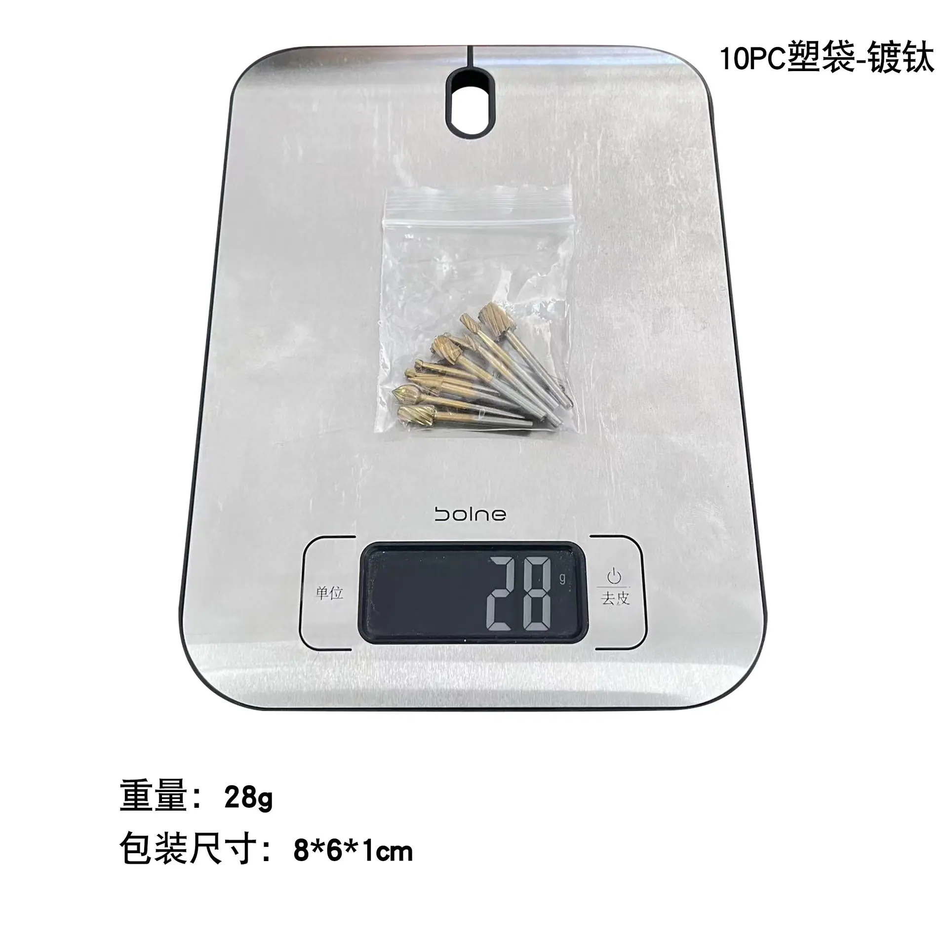 10 piezas lima rotativa de aguja fina (chapada en oro titanio)--bolsa de plástico 28g