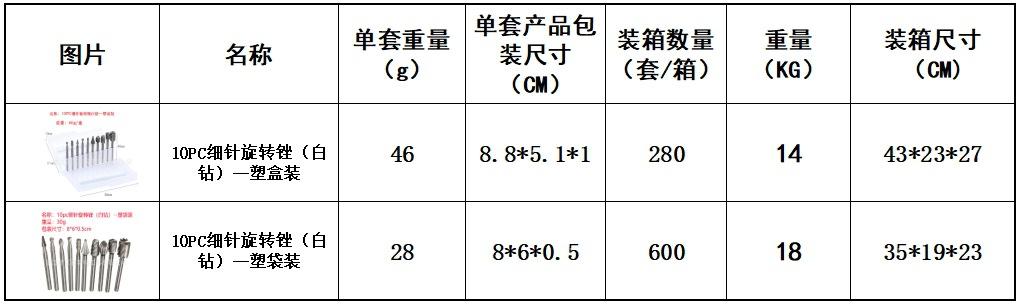 10 piezas lima rotativa de aguja fina (diamante blanco) --Caja blanca46 gramos