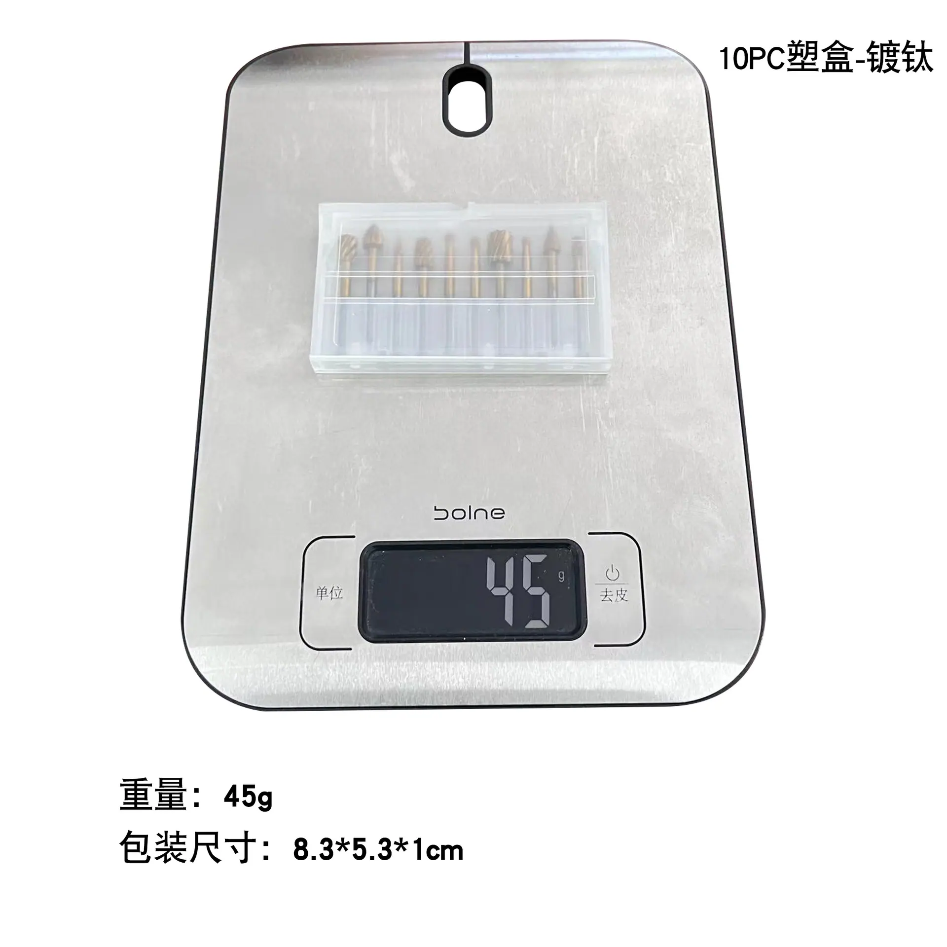 Nombre: 10 piezas lima rotativa de aguja fina (chapado en oro titanio) --Caja blanca 46 gramos