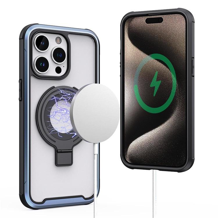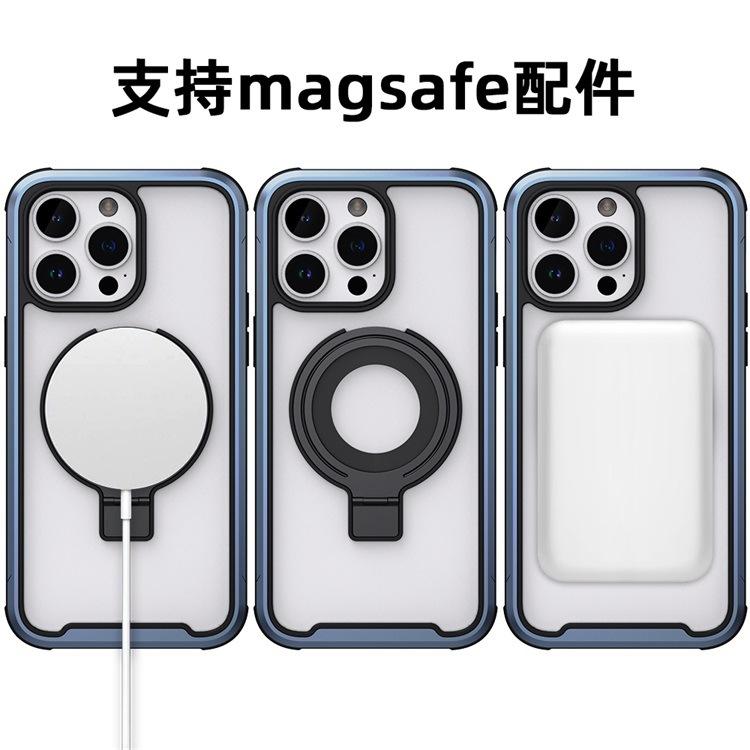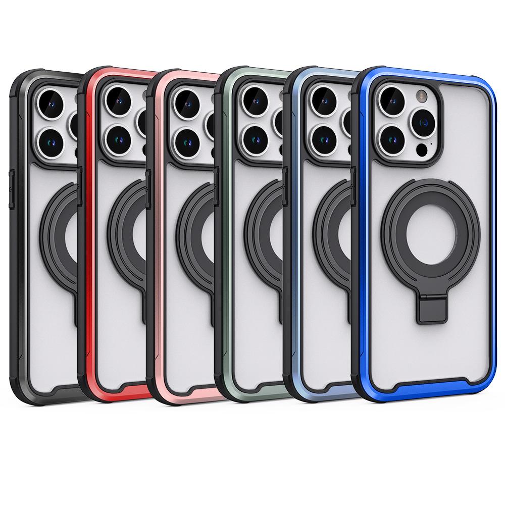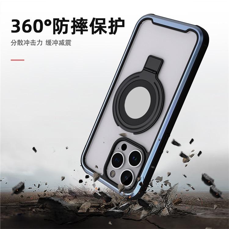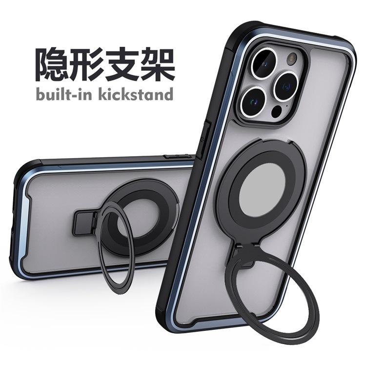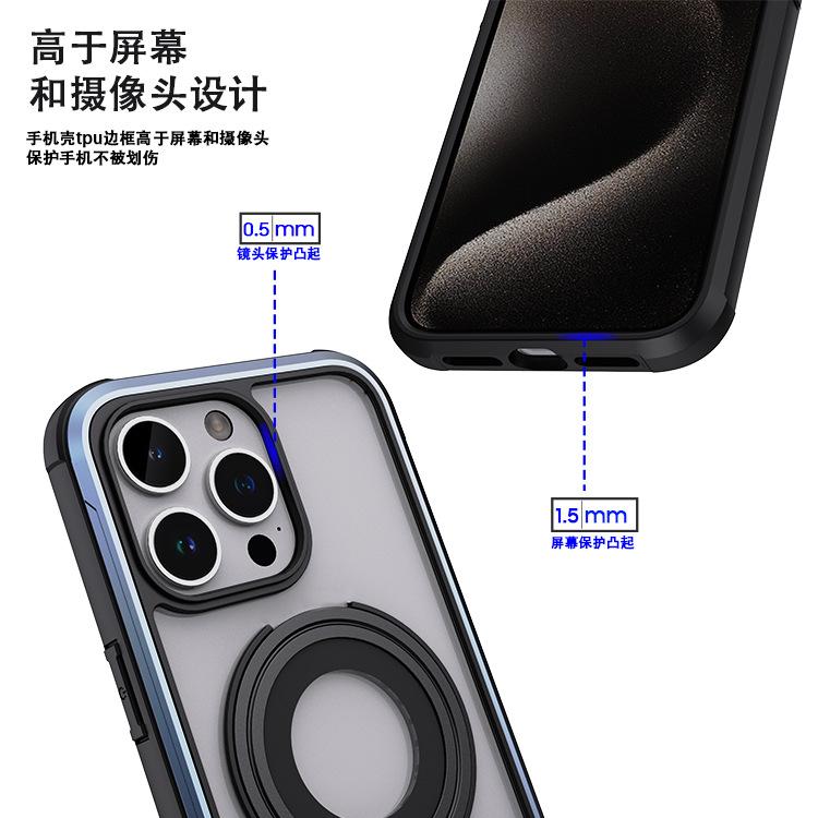 Adecuado para Iphone16 Soporte Magnético Funda para Teléfono Móvil Apple 15Promax Fulcro Anti-Caída Cubierta Protectora Metálica Transfronteriza