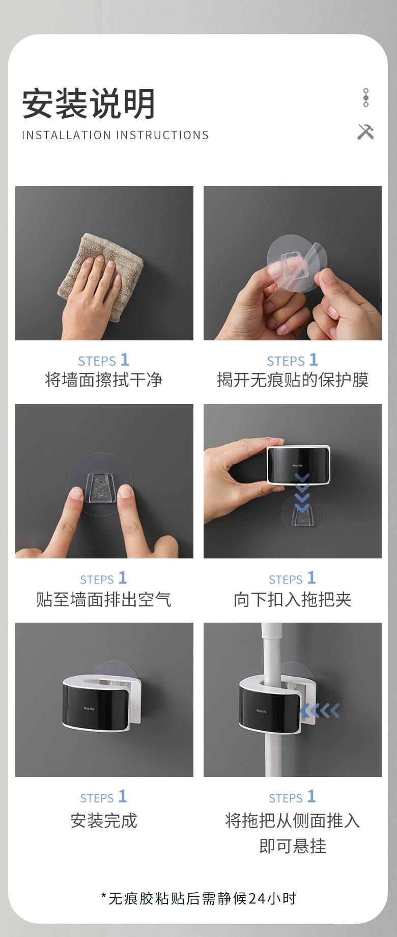 Gancho para trapeador, sin perforaciones, para colgar en la pared, para inodoro, con hebilla de fijación fuerte de viscosa, para escoba