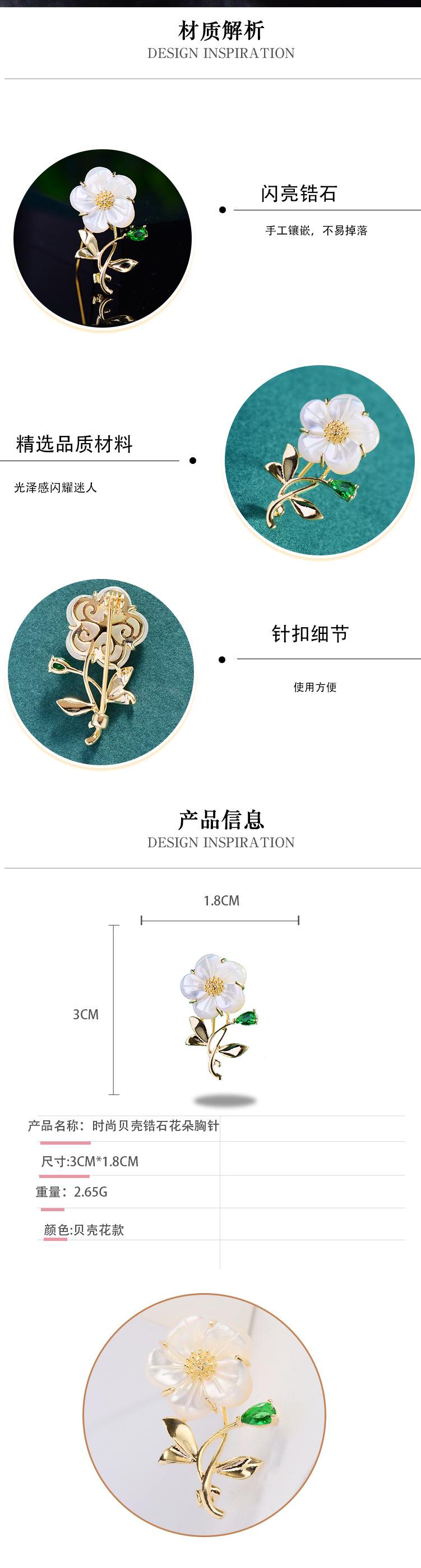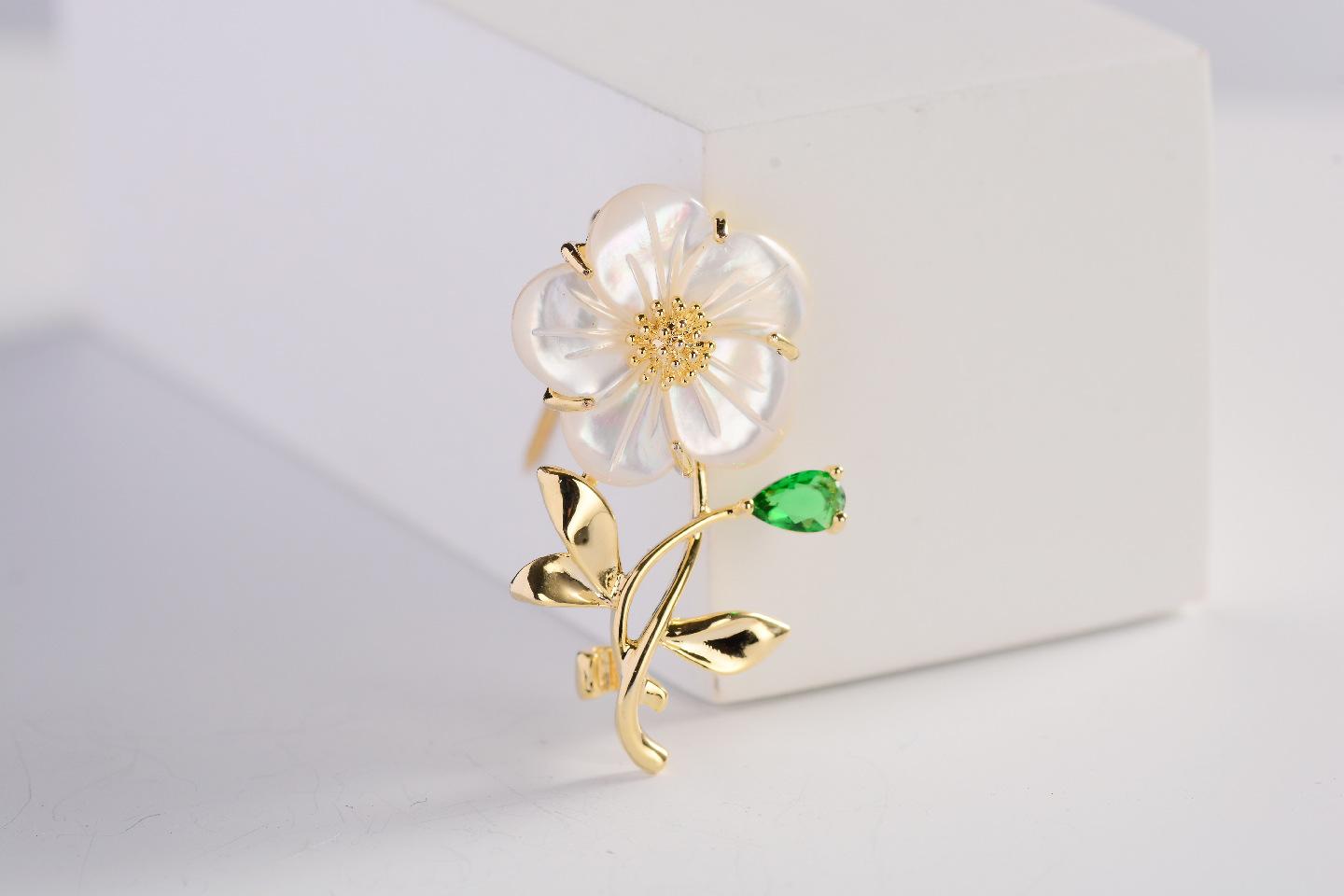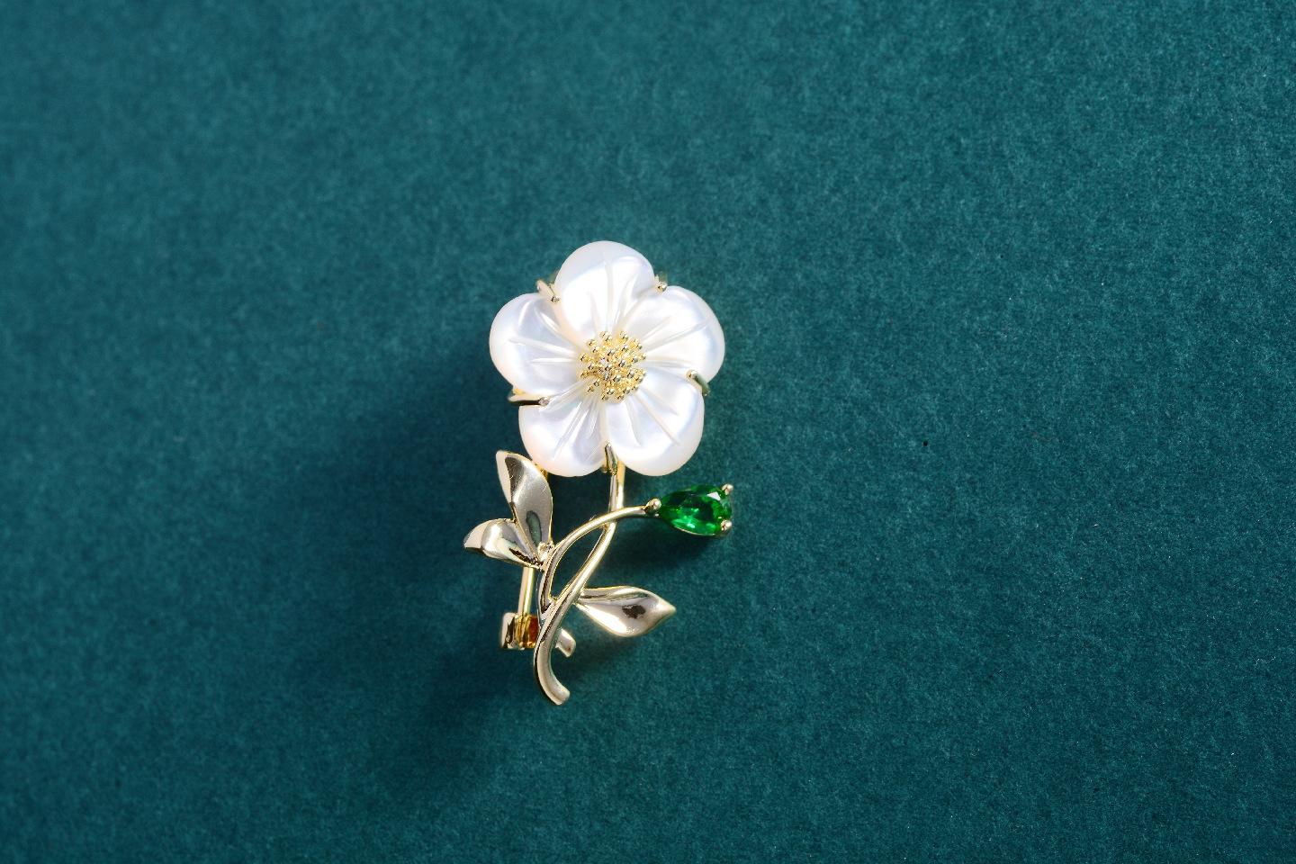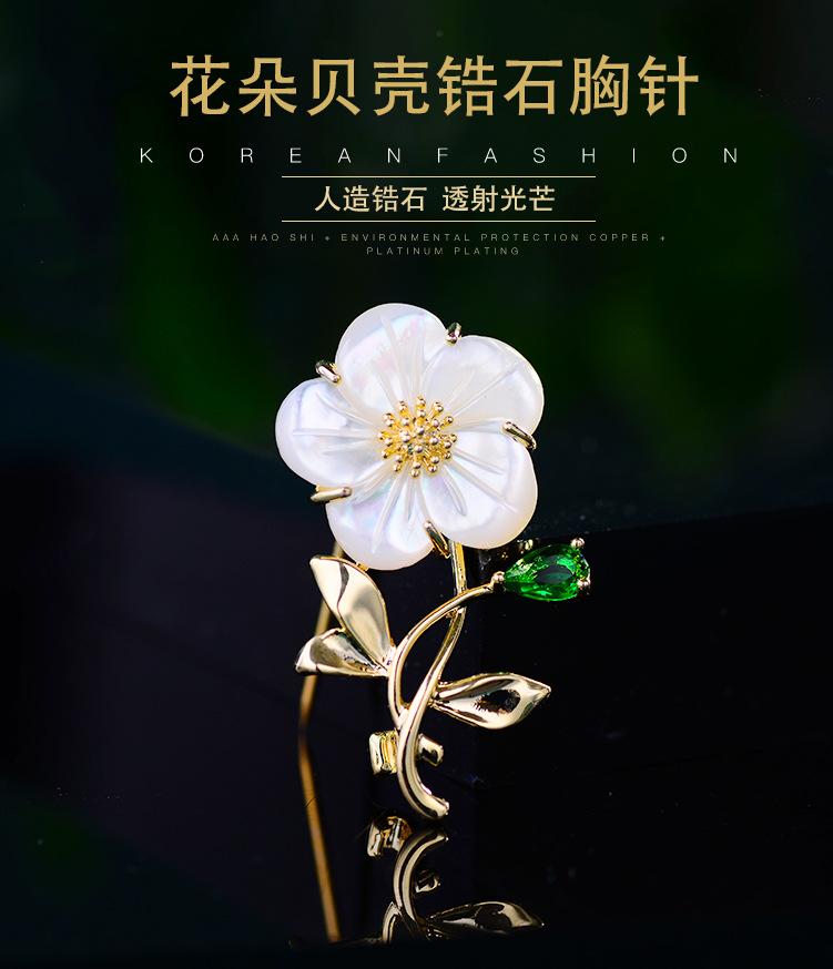 Broche de flor de concha lindo de estilo japonés y coreano, creativo, simple, brillante, pequeño, elegante, para ropa, accesorios de traje