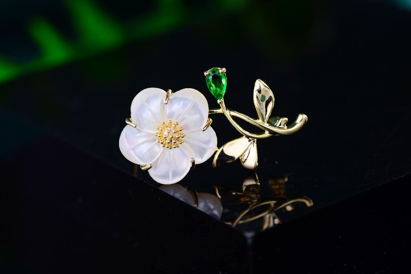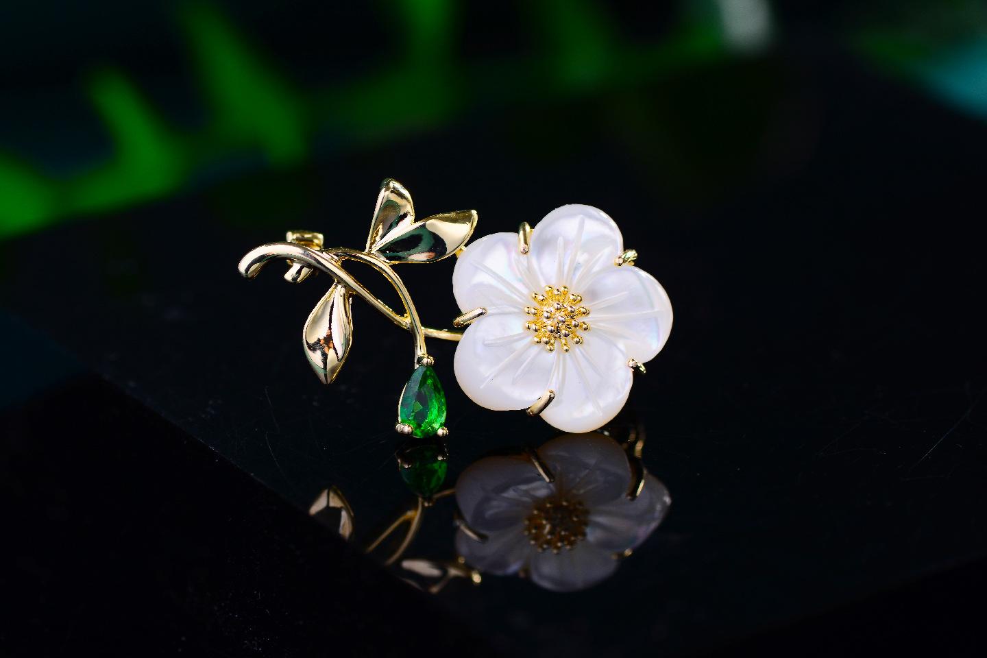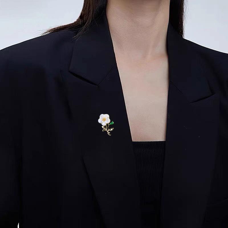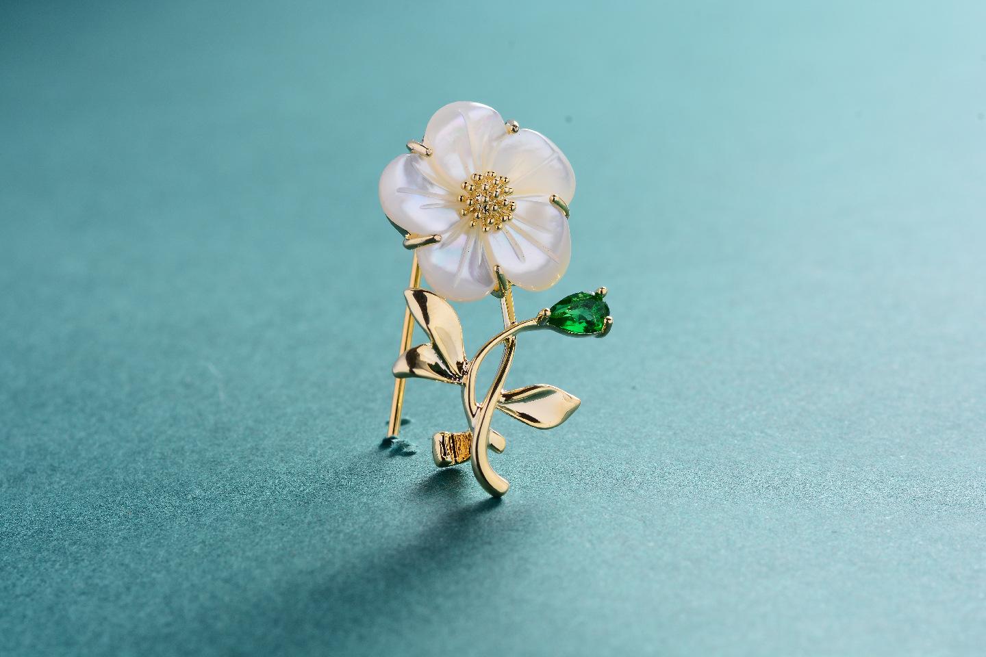 Broche de flor de concha lindo de estilo japonés y coreano, creativo, simple, brillante, pequeño, elegante, para ropa, accesorios de traje