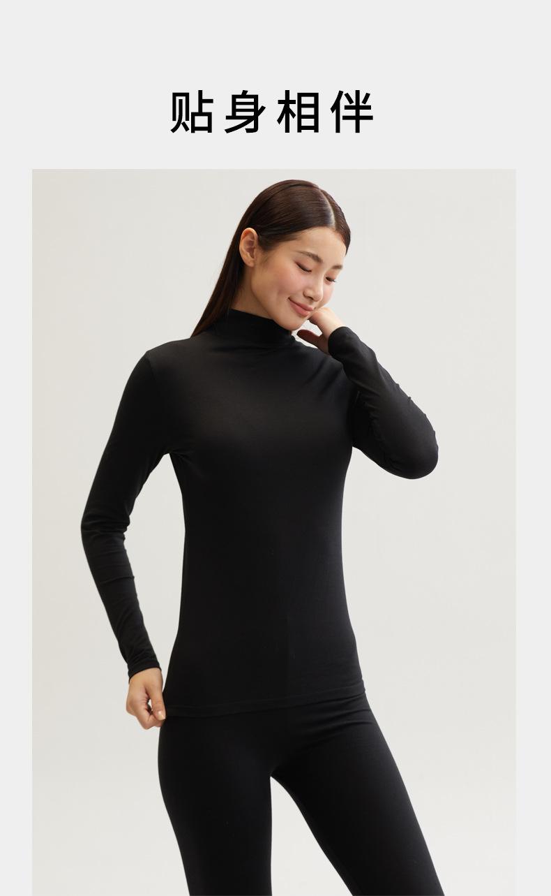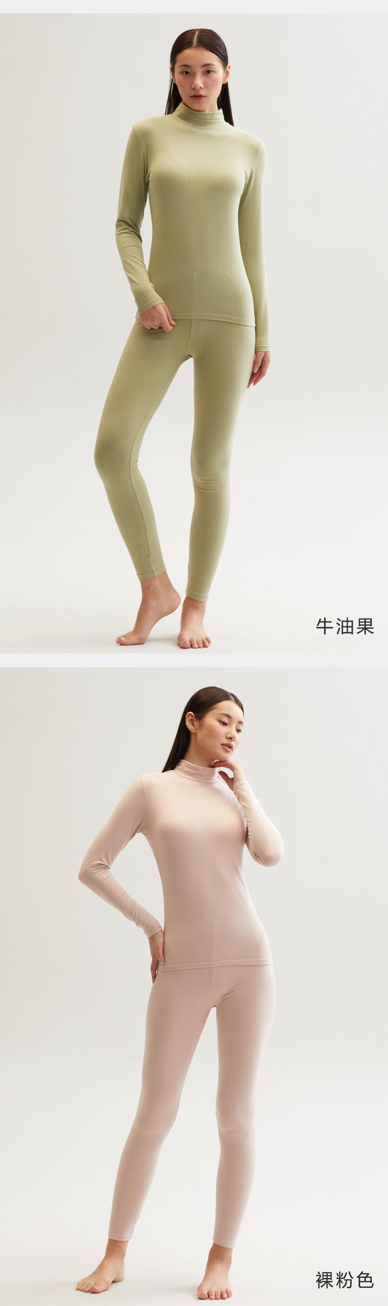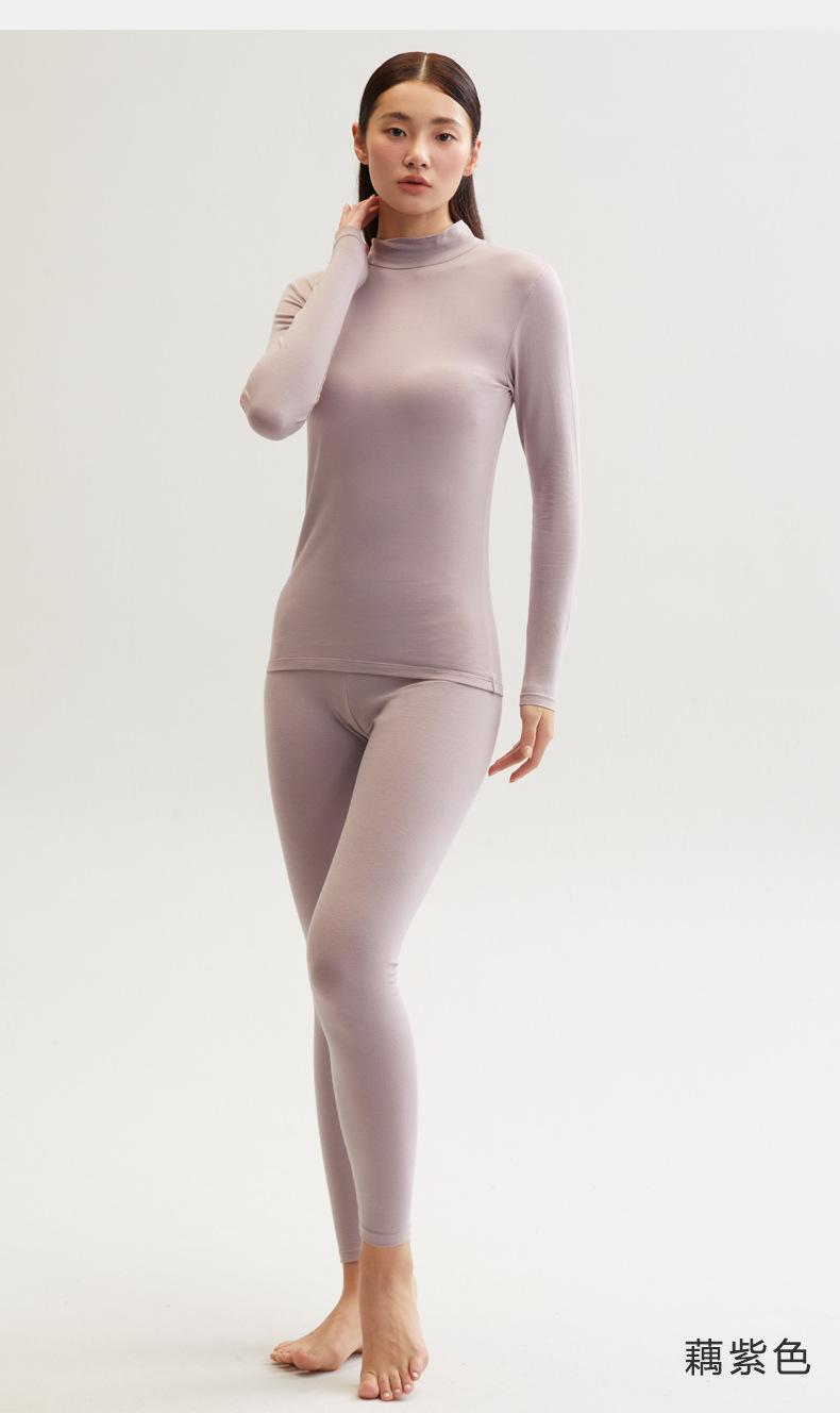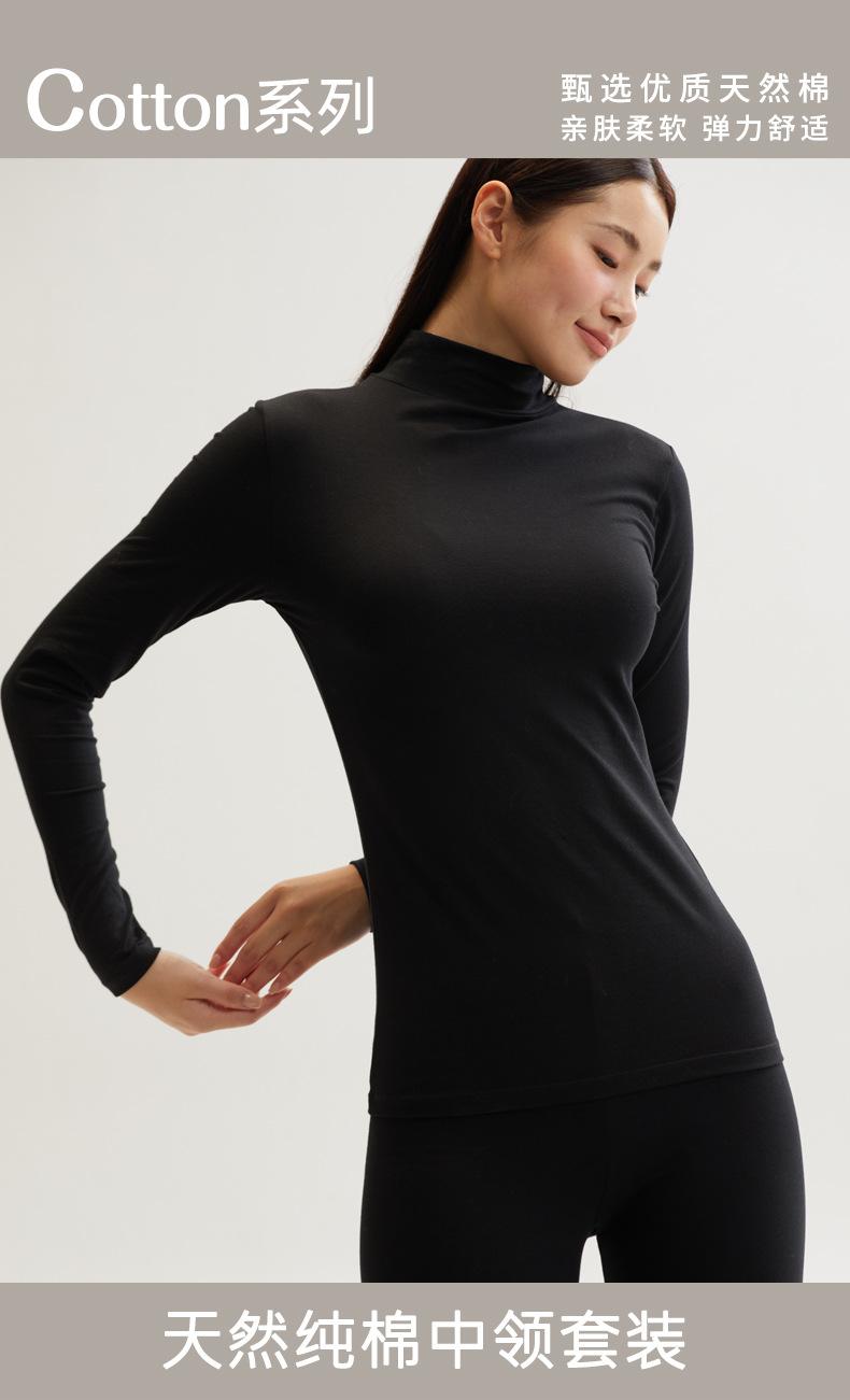 Traje de punto de algodón puro de color sólido para dama con cuello medio, ropa interior térmica de fondo cálido para invierno, corte slim para chica delgada, venta al por mayor de fábrica