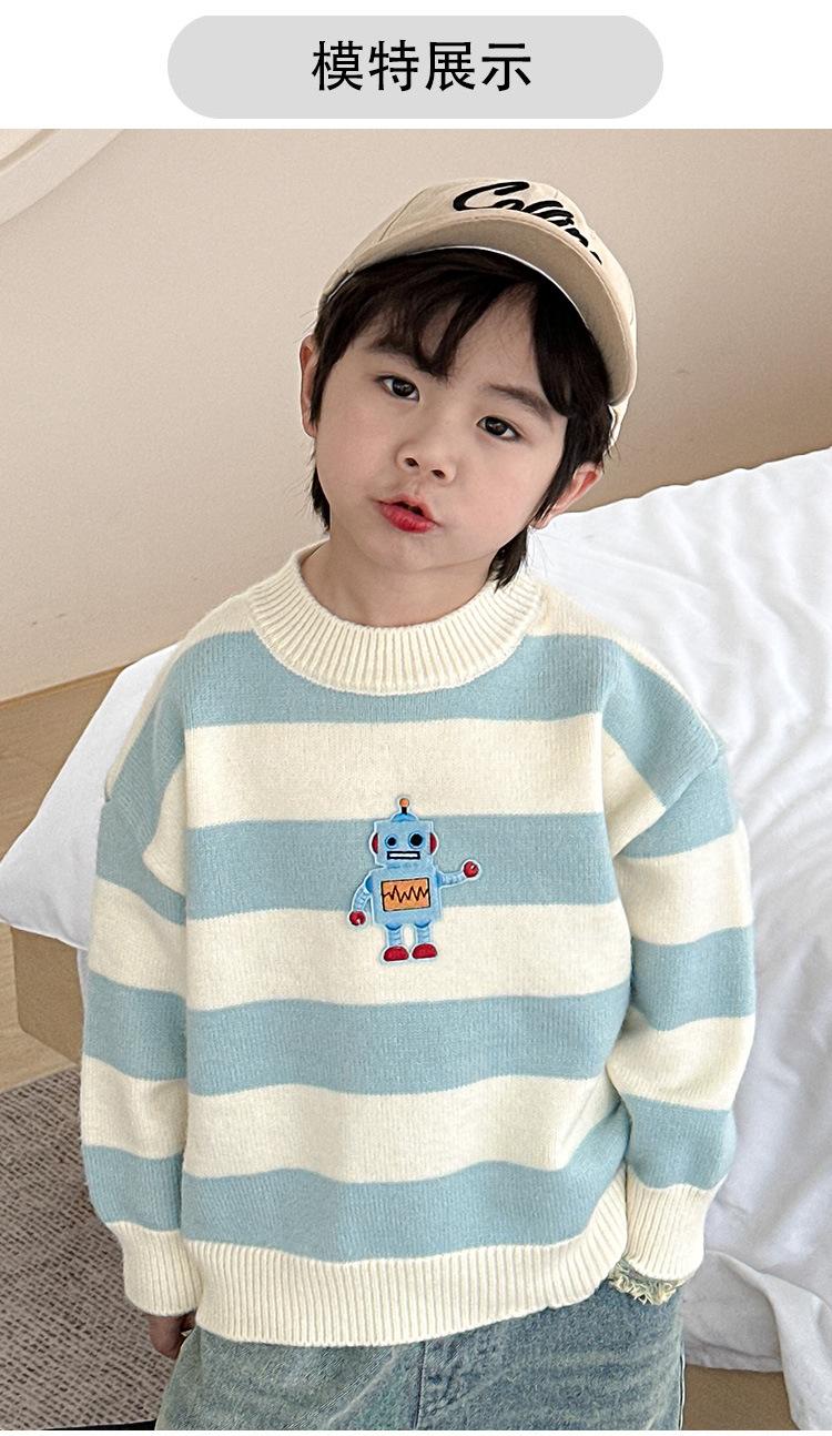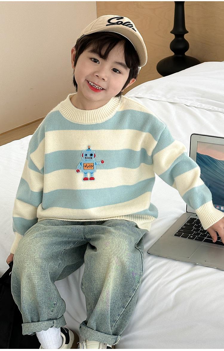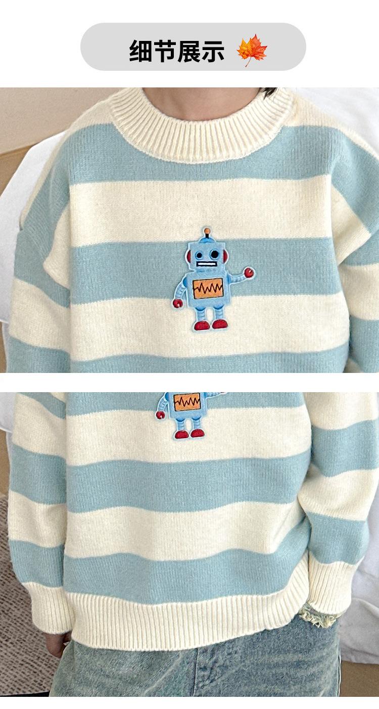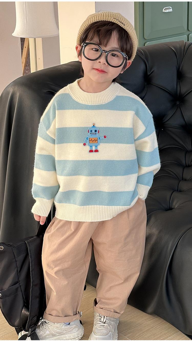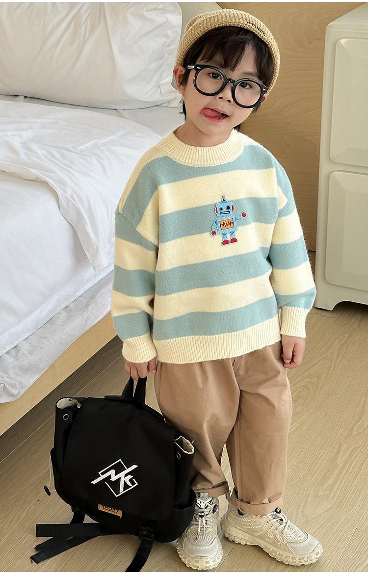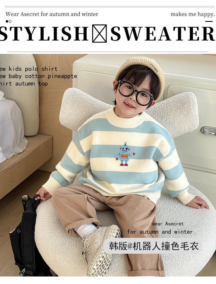 Compra Ropa para Niños Otoño Nuevo Niños Coreano Rayado Suéter Versátil Dibujos Animados Lindo Cuello Redondo Suéter Top al por mayor en Joom.pro