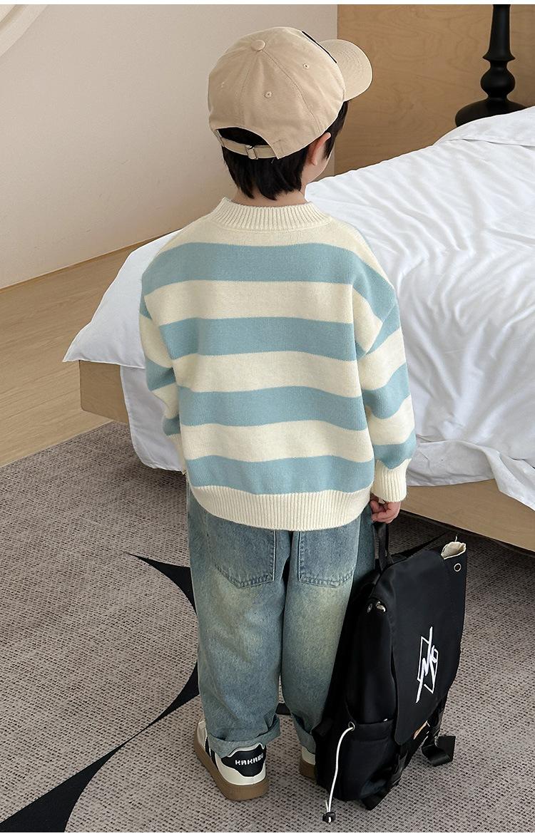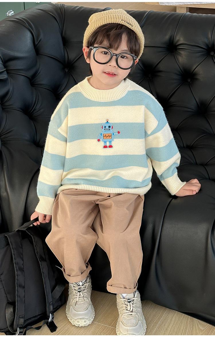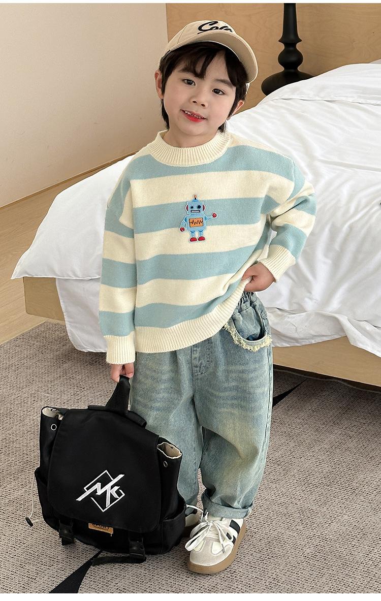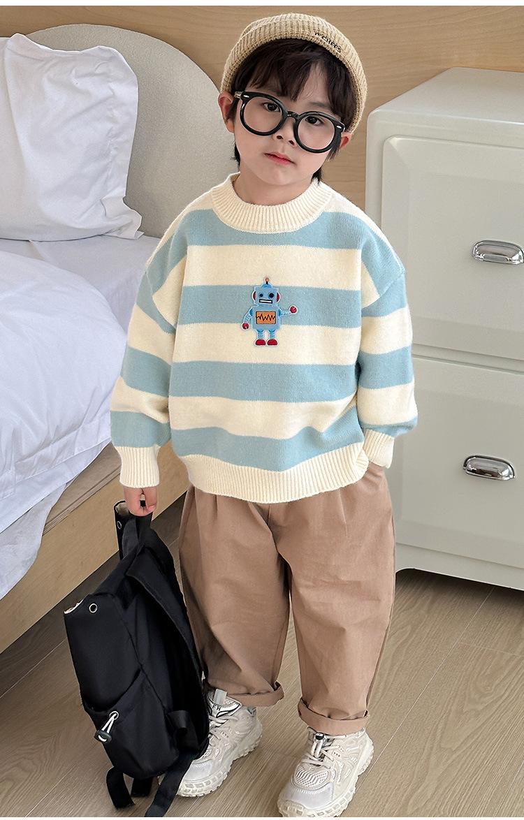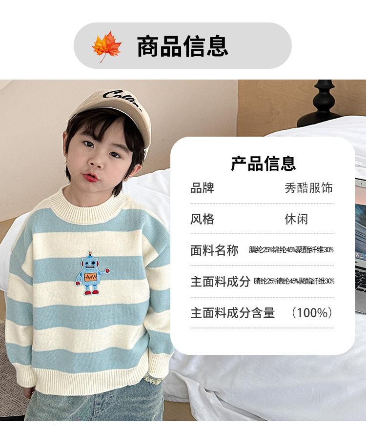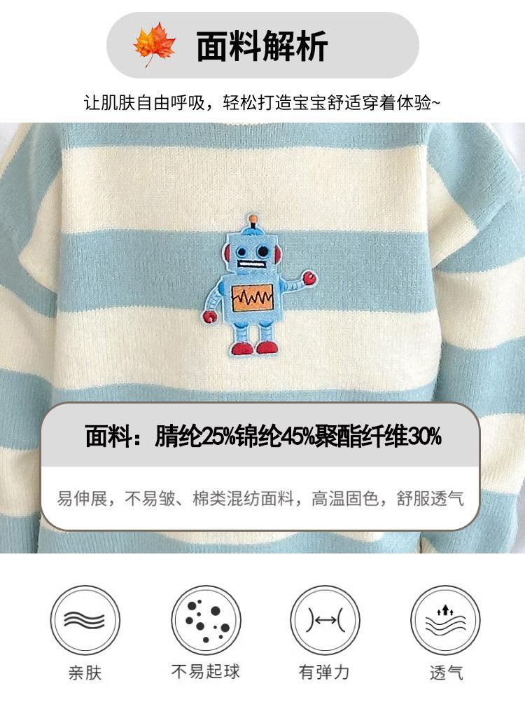 Compra Ropa para Niños Otoño Nuevo Niños Coreano Rayado Suéter Versátil Dibujos Animados Lindo Cuello Redondo Suéter Top al por mayor en Joom.pro