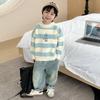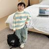 Ropa para Niños Otoño Nuevo Niños Coreano Rayado Suéter Versátil Dibujos Animados Lindo Cuello Redondo Suéter Top