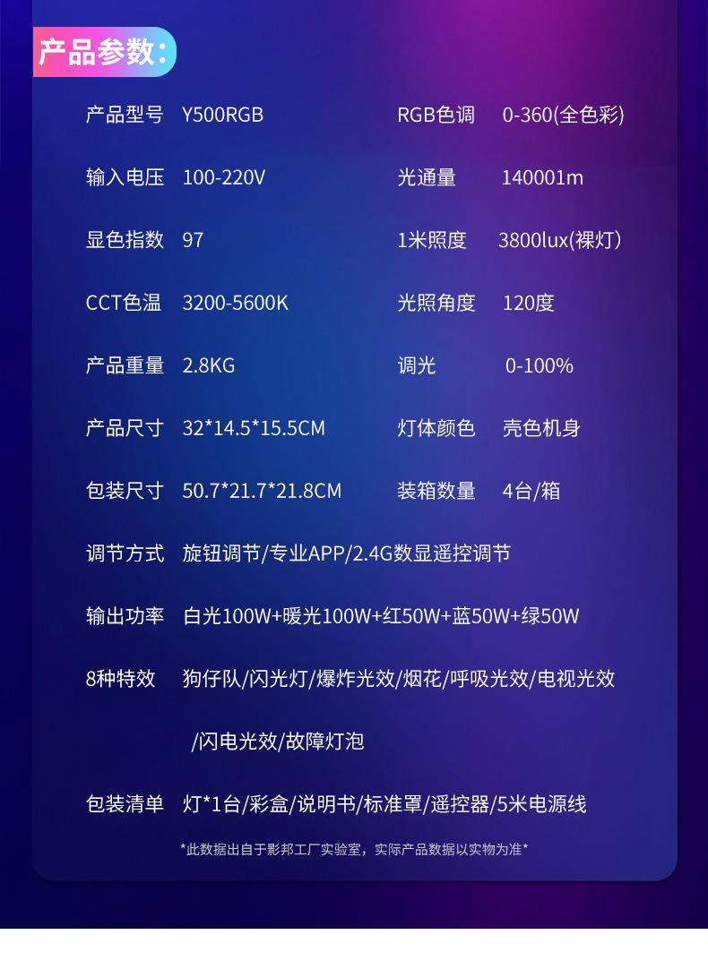 Y500RGB single lamp standard, Y500RGB 2.8 m bracket, Y500RGB 65 soft ball 2.8 m bracket, Y500RGB Four Corner S...