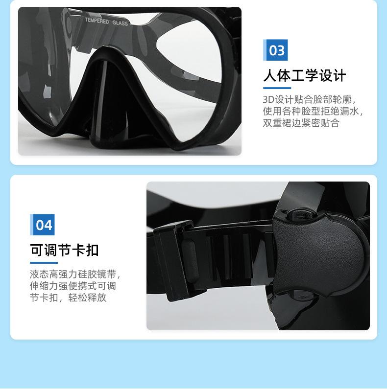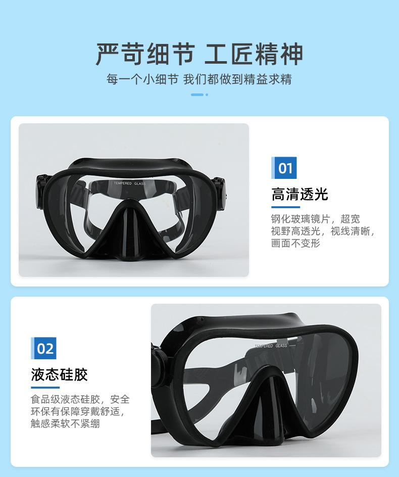 Gafas de buceo para adultos transfronterizas, máscara de buceo de silicona de marco grande HD, gafas de buceo de bajo volumen, equipo de snorkel recomendado