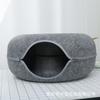 Nido redondo de fieltro para mascotas, universal para gatos Four Seasons, con forma de donut, semicerrado, con túnel de juguete para perforar gatos