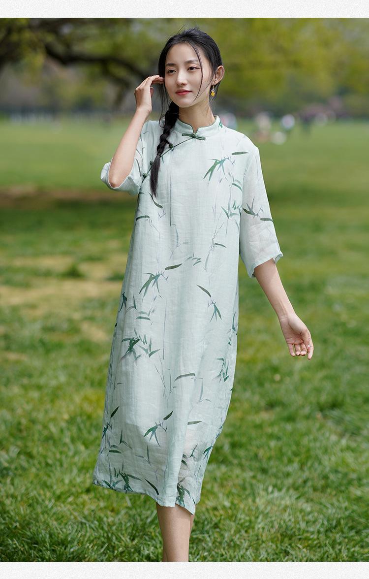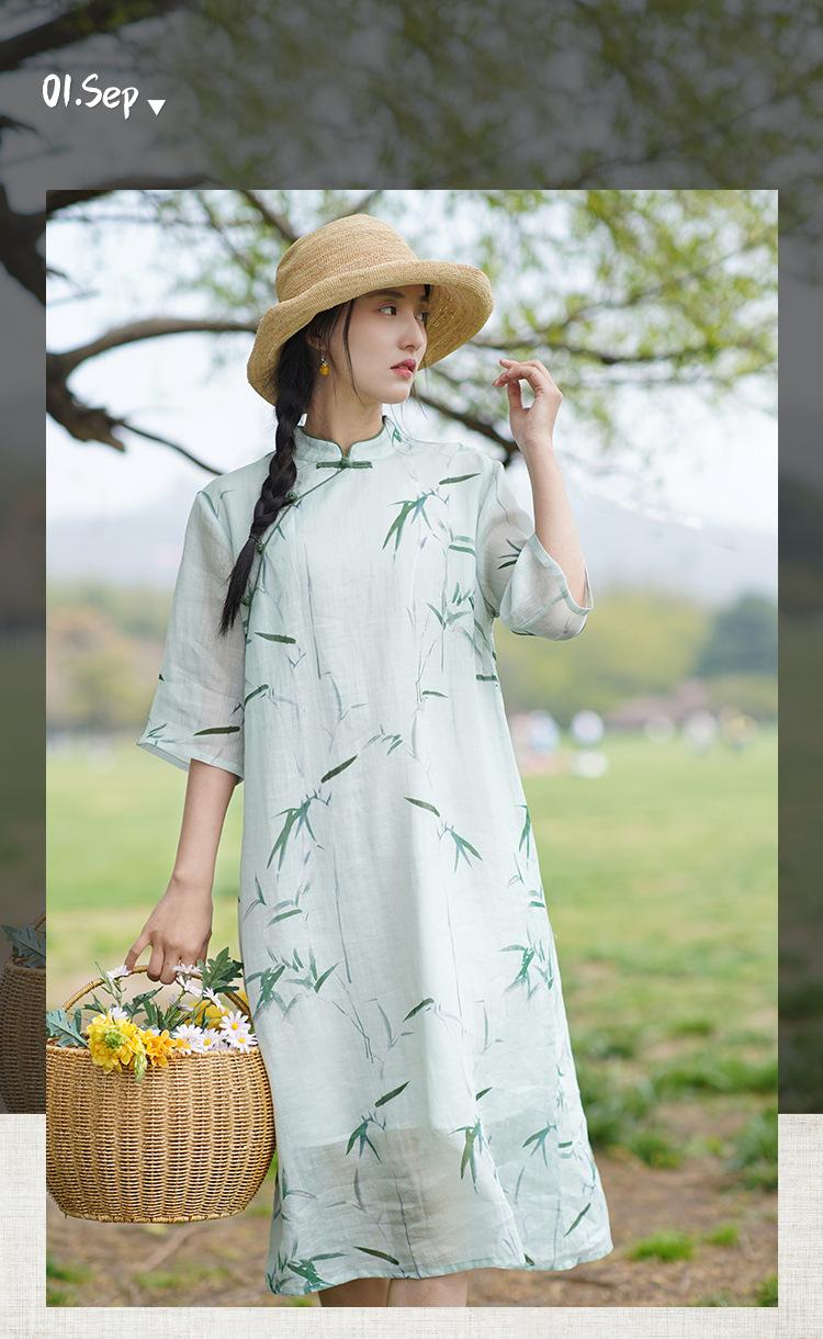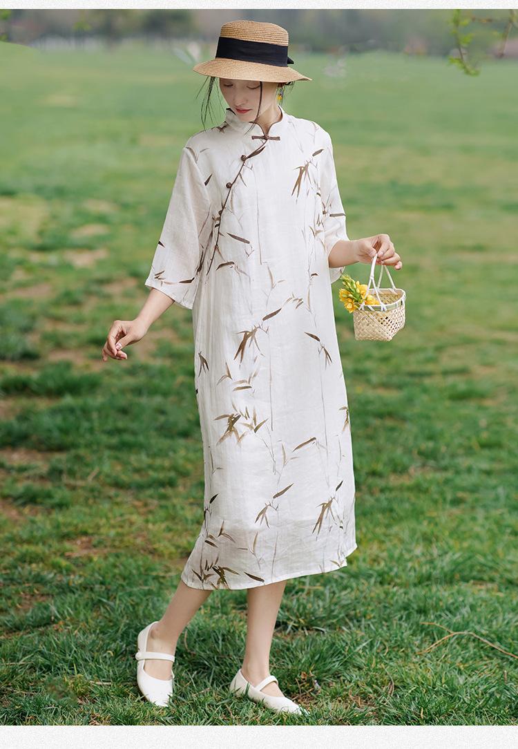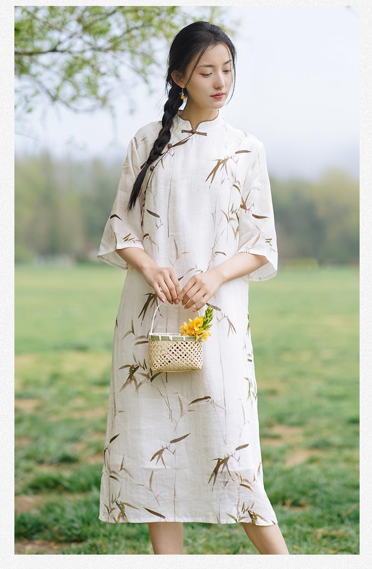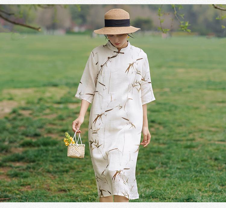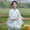 Ropa de mujer de algodón y lino 2025 verano nuevo vestido ropa de arte del té estilo nacional temperamento cheongsam mejorado retro chino