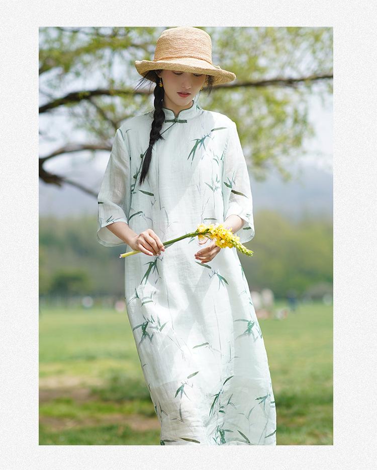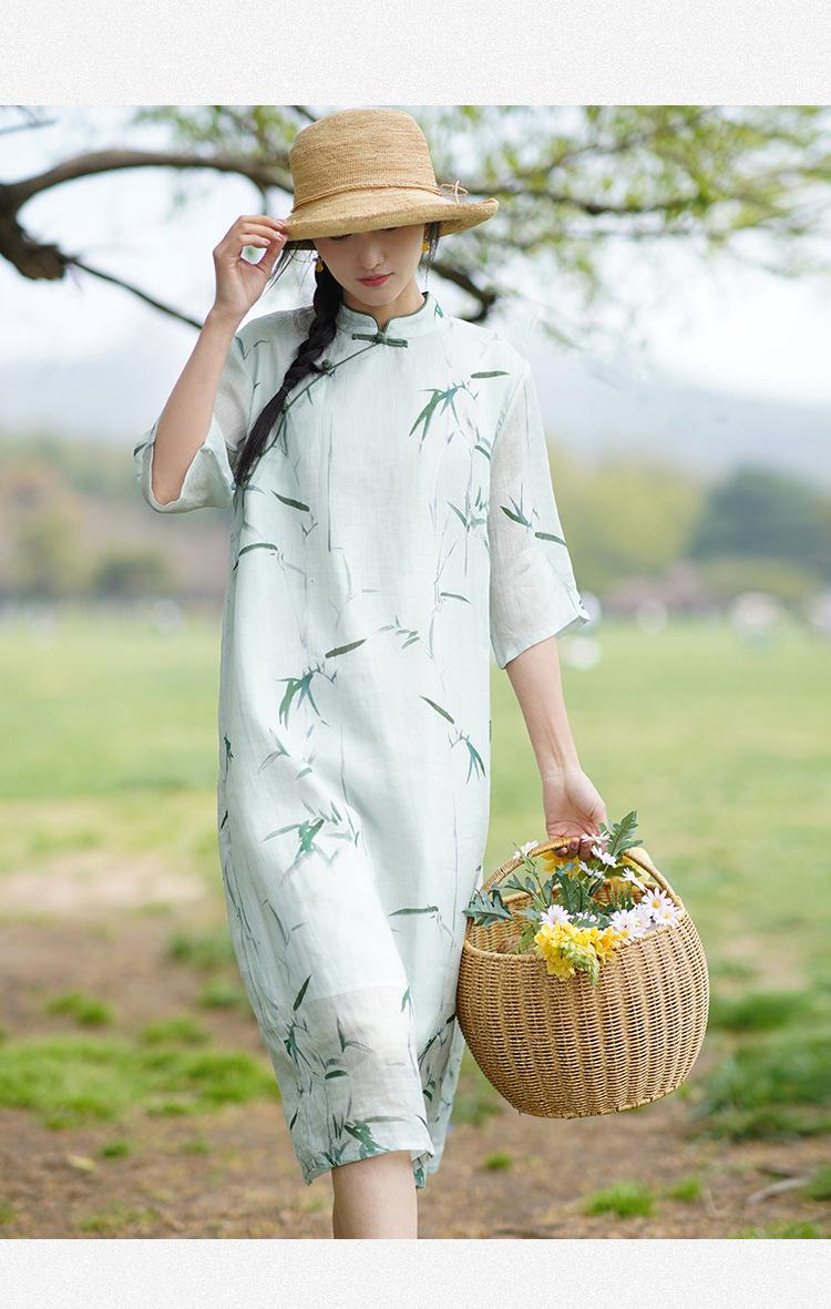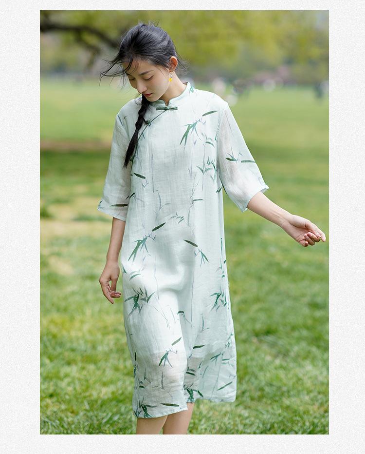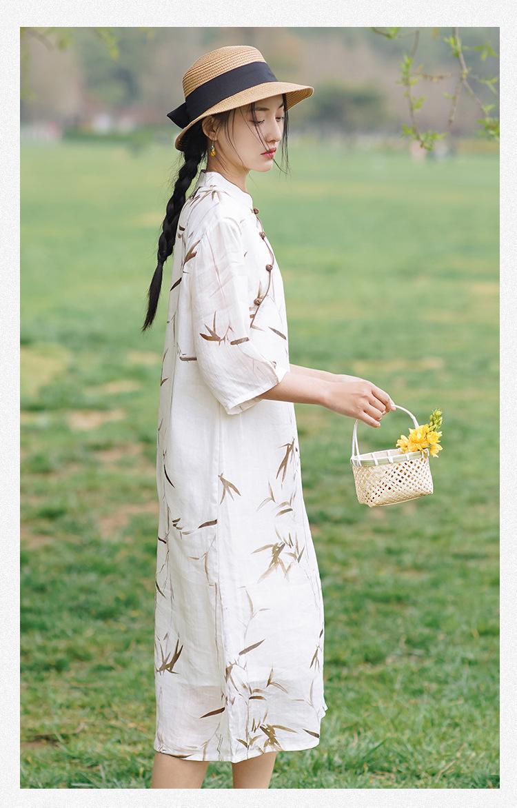 Ropa de mujer de algodón y lino 2025 verano nuevo vestido ropa de arte del té estilo nacional temperamento cheongsam mejorado retro chino