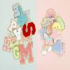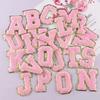 Toalla con etiqueta bordada Parches bordados con letras inglesas con borde dorado Accesorios para ropa Aplicación Chenilla Parche de tela bordada autoadhesivo