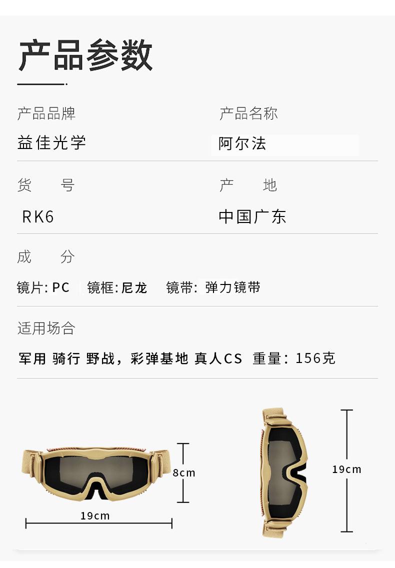 Gafas Tácticas Alpha Personalizadas Rk6 Gafas de Tiro a Prueba de Viento Equipo para Exteriores Entusiastas Militares Campo Cs Resistentes a los Impactos
