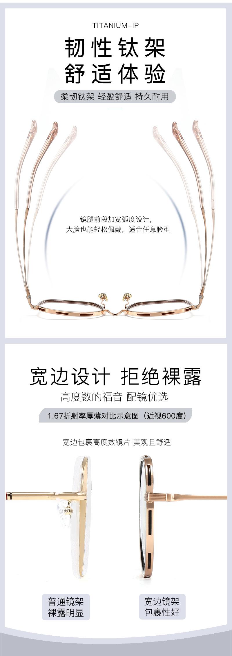Shenzhen Alta Calidad Moda Multilateral Montura Grande Lisa Titanio Puro miopía montura de gafas ajuste lateral ancho altura a juego gafas