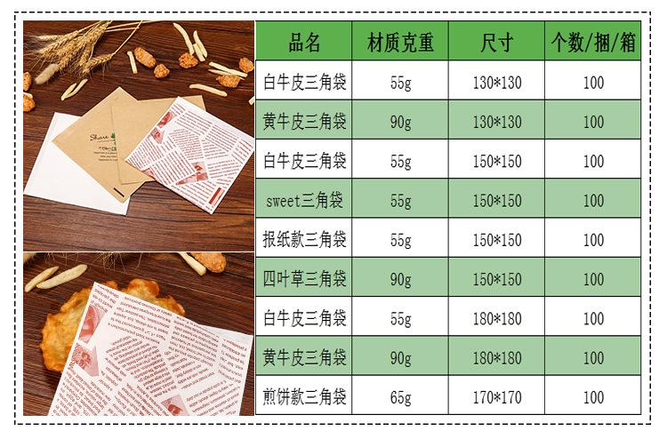 Bolsa de papel para pastel relleno de huevo Bolsa de papel para pastel con salsa Tujia Bolsa de papel triangular para comida