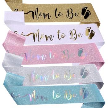 Cinturón de etiqueta con correa para el hombro, diseño de arcoíris, para cumpleaños de niña, decoración para fiesta, nuevo y a la moda | Artículos para fiestas de cumpleaños de niña, sombreros, accesorios para el cabello, aro para el cabello de niña, insignia, bandera para tirar, cuatro piezas | Suministro transfronterizo de cinturón de etiqueta con letras doradas y correa para el hombro con huellas de futuras mamás en tela brillante. | ||