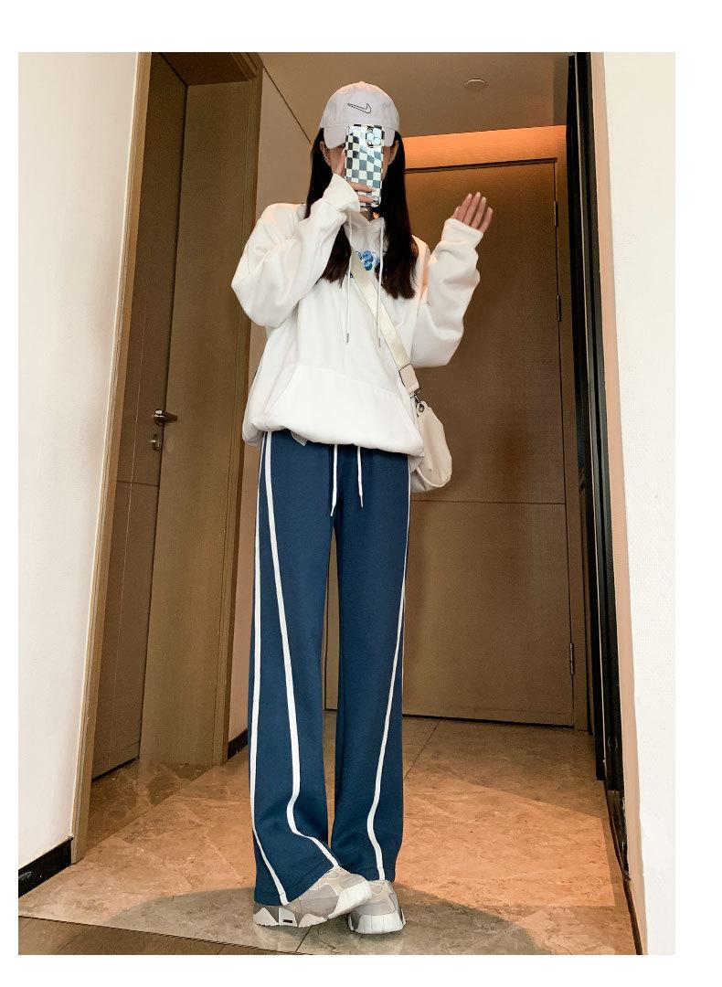 Pantalones de chándal negros para mujer 2025 Nuevos Pantalones rectos holgados para mujer Cintura alta Caída Primavera y Otoño Pantalones de pierna ancha estrechos
