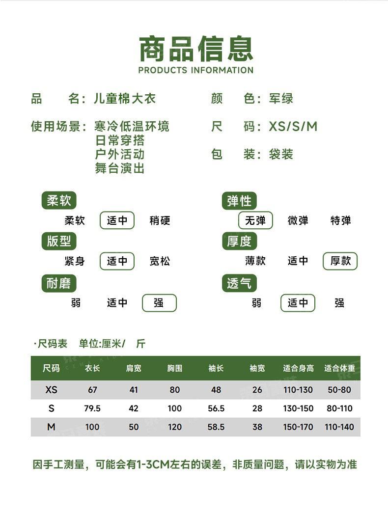 Abrigo de Algodón para Niños Chaqueta de Algodón Verde Noreste de Moda a Prueba de Frío Ropa de Algodón Cálida Abrigo de Algodón para Campamento de Invierno en Stock