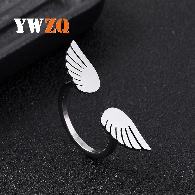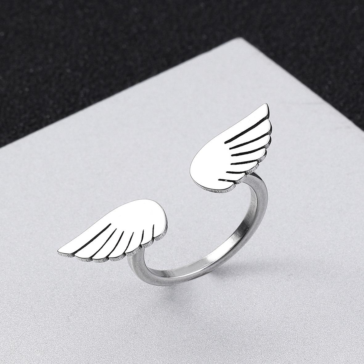 Nueva Moda Joyería de Acero Inoxidable Patrón Alas de Ángel Apertura Ajustable Anillo Creativo de Acero de Titanio al por Mayor