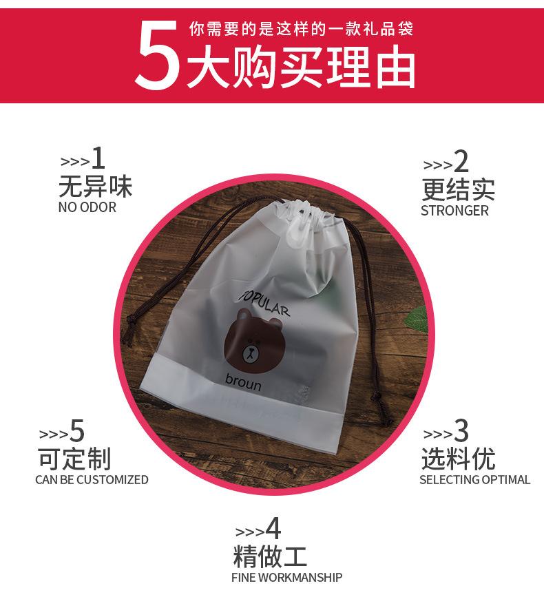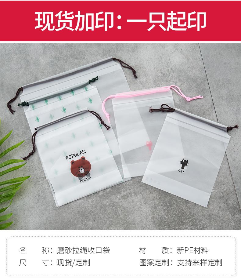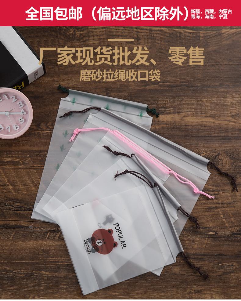 Bolsa de almacenamiento de viaje para ropa esmerilada Daisy transparente esmerilada con cordón bolsa con cordón bolsa de embalaje de plástico al por mayor