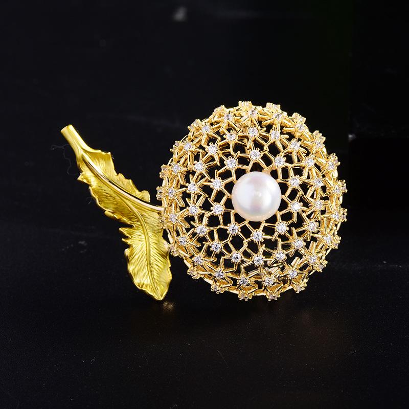 Broche coreano de lujo ligero elegante esmaltado con incrustaciones de circonio perla de agua dulce exquisito ramillete accesorios de pin de alta gama
