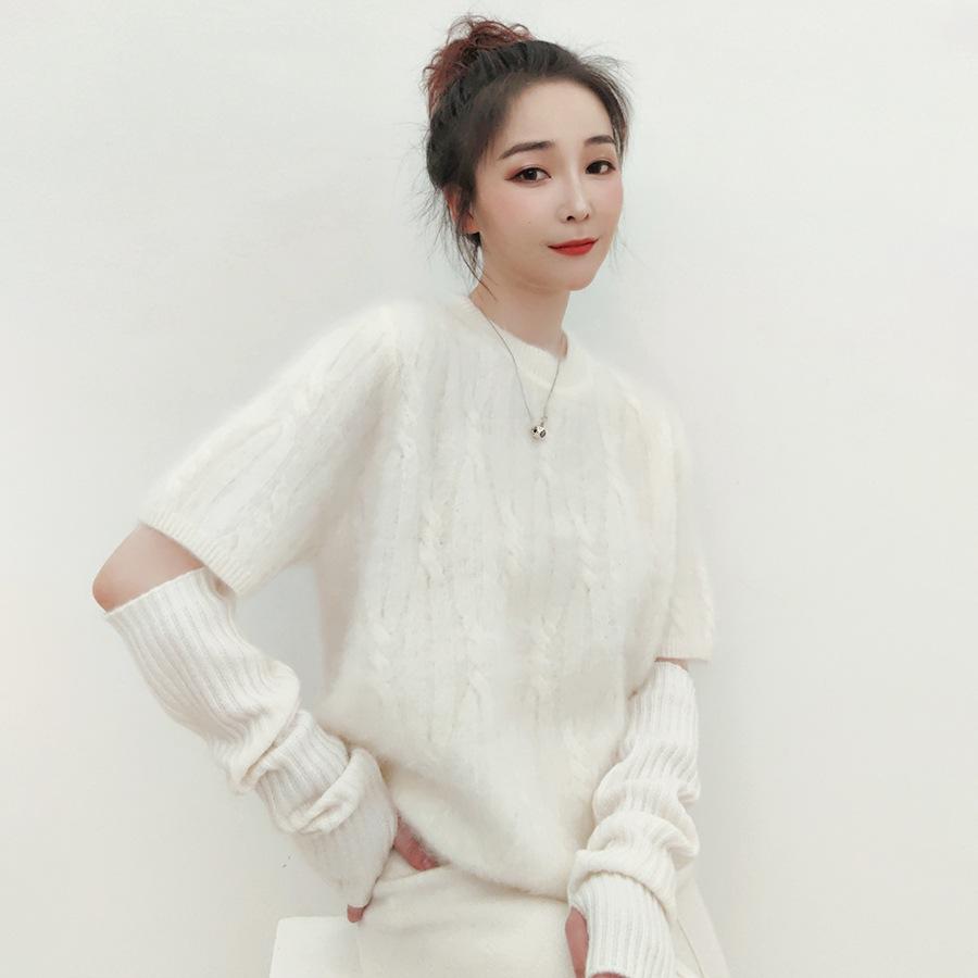 Guantes de mujer otoño e invierno Nuevos guantes de punto de cachemira pura guantes largos manguito sobremanga brazo medio dedo punta abierta mano de cachemira