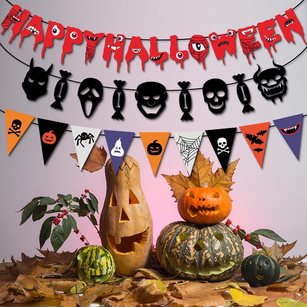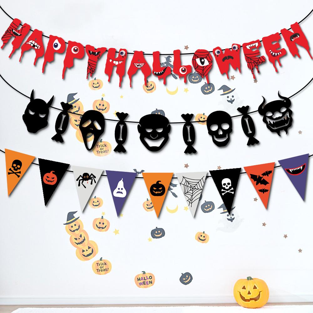 Compra Decoración de Halloween banderín de tirar banderín de festival de fantasmas decoración colgante suministros para fiesta banderín de tirar de calavera con cara de fantasma al por mayor en Joom.pro