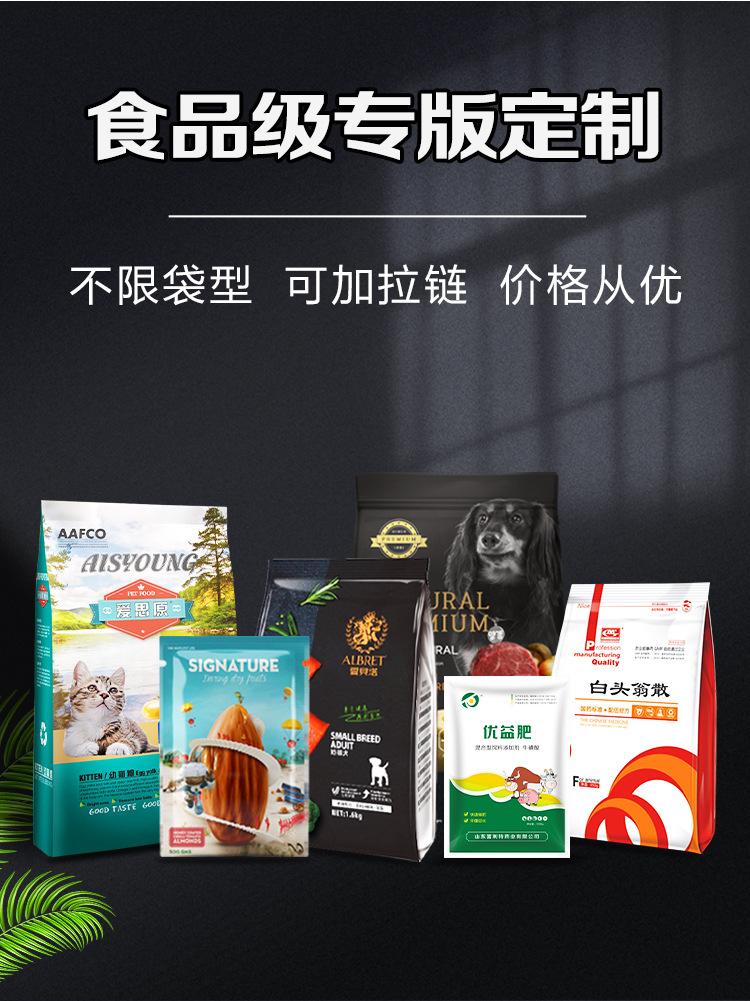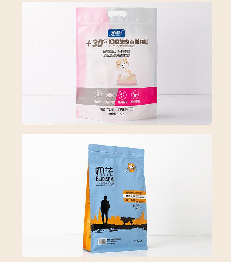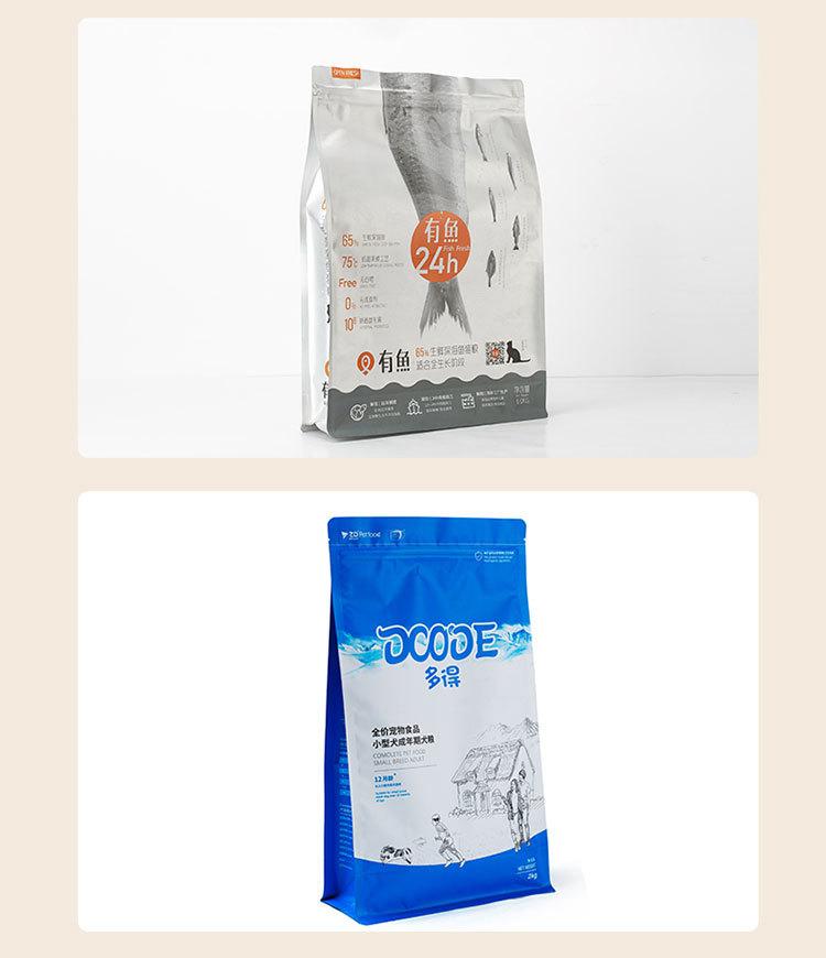 Bolsa de embalaje de alimentos personalizada para comida de perro gato autosellable de aluminio ocho lados sellado plástico autosoportable autosellable impresión