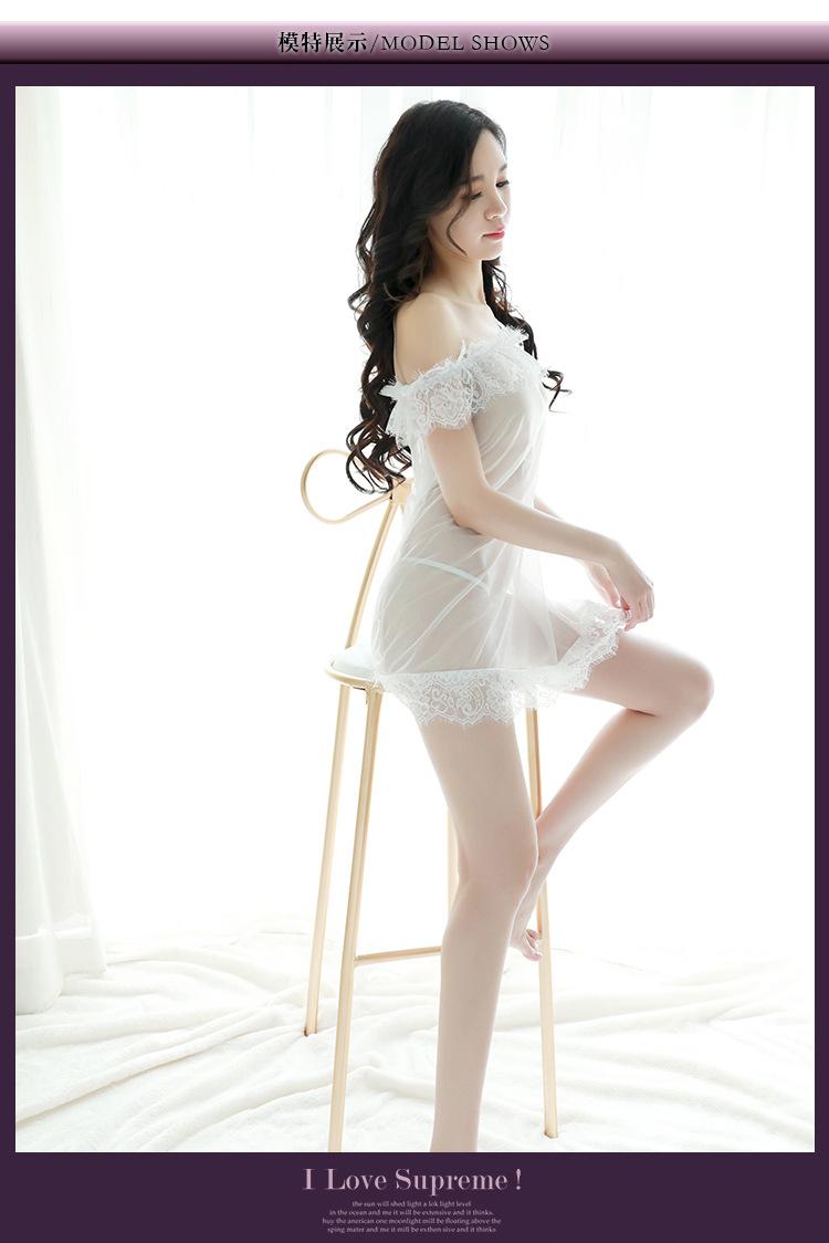 Lencería Erótica Encaje Transparente Tentación Camisón Sexy de un Hombro Vestido de Noche Erótico Vestido de Noche Sexy de Encaje