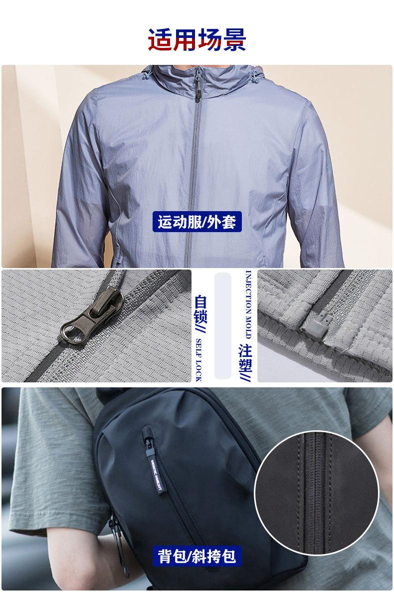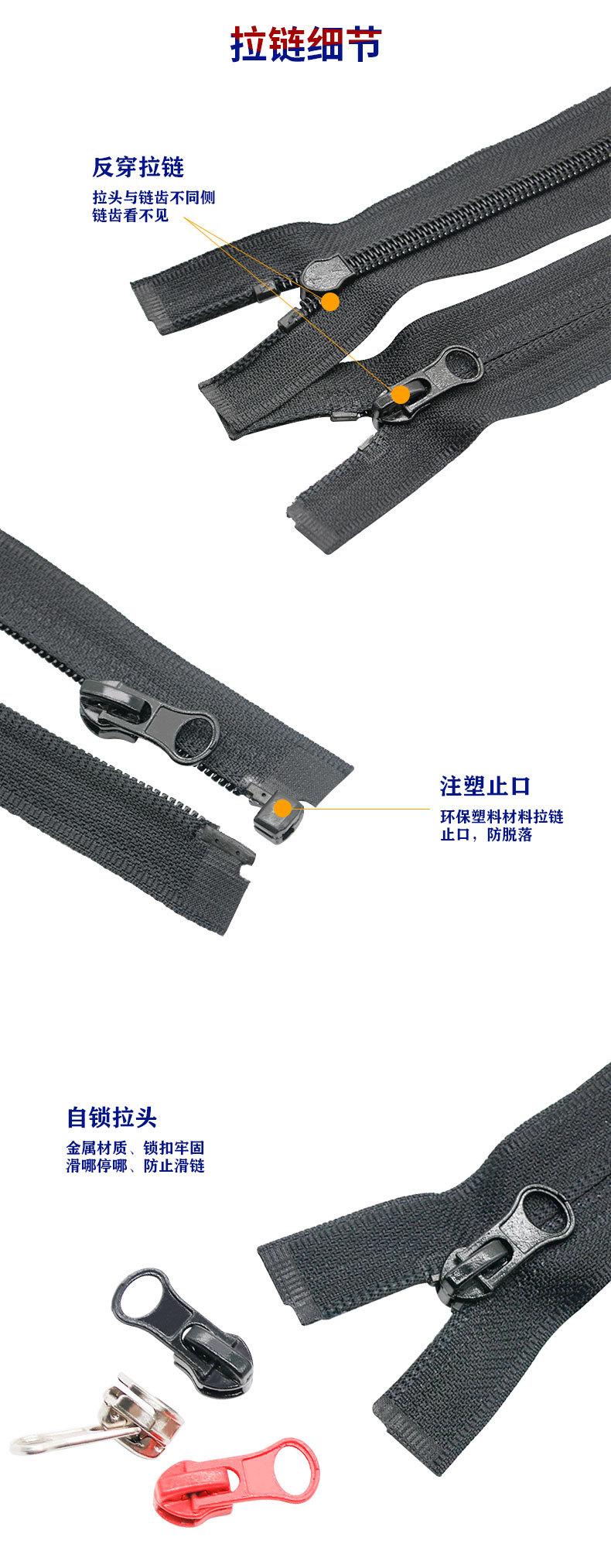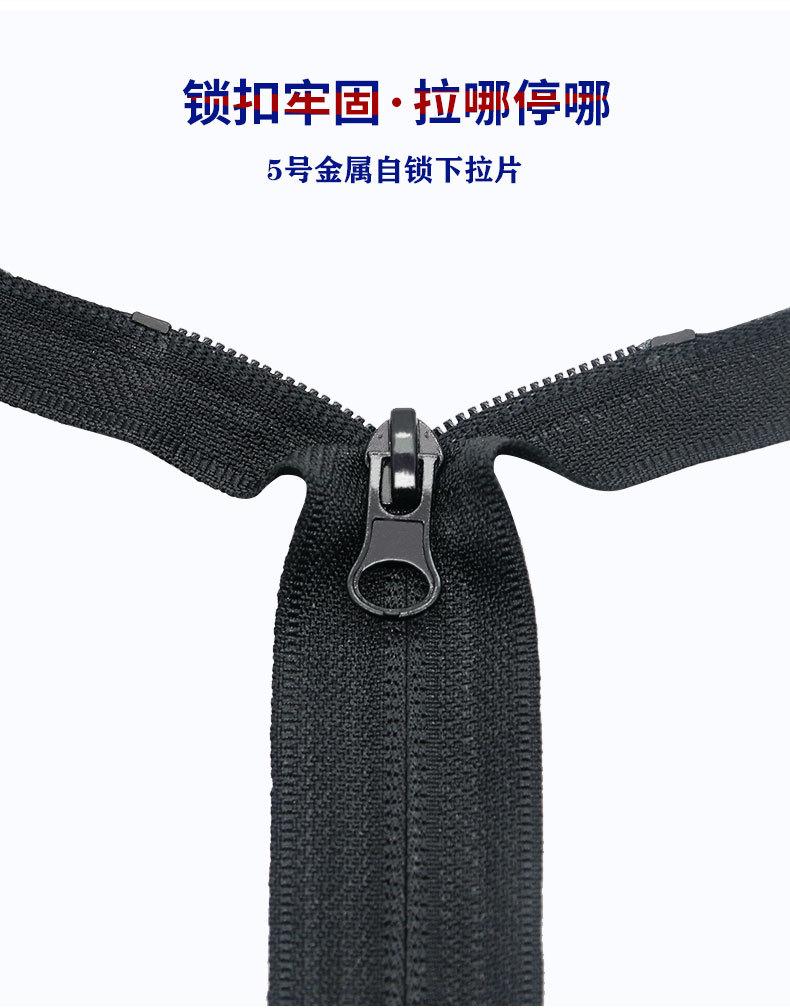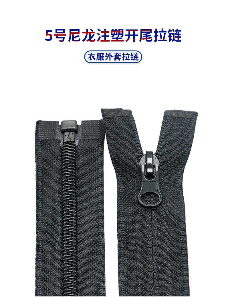 Cremallera de nailon n.° 5 moldeada por inyección, con cierre de cola abierta, para ropa de bebé, protección solar, color negro, venta al por mayor.