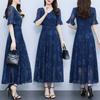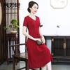 2024 verano nuevo vestido temperamento socialité seda brillante cuello en V falda acampanada hasta la rodilla talla grande vestido de novia al por mayor