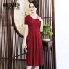 Vestido de mamá de acetato de longitud media versión mejorada del vestido cheongsam, ropa de banquete de boda, ropa de mujer de mediana edad, nuevo estilo de otoño 2021
