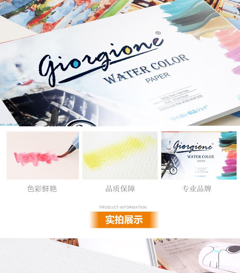 Papel de pulpa de madera pura Giorgione Acuarela Bocetos de pintura portátiles Traje de papel de acuarela para estudiantes principiantes