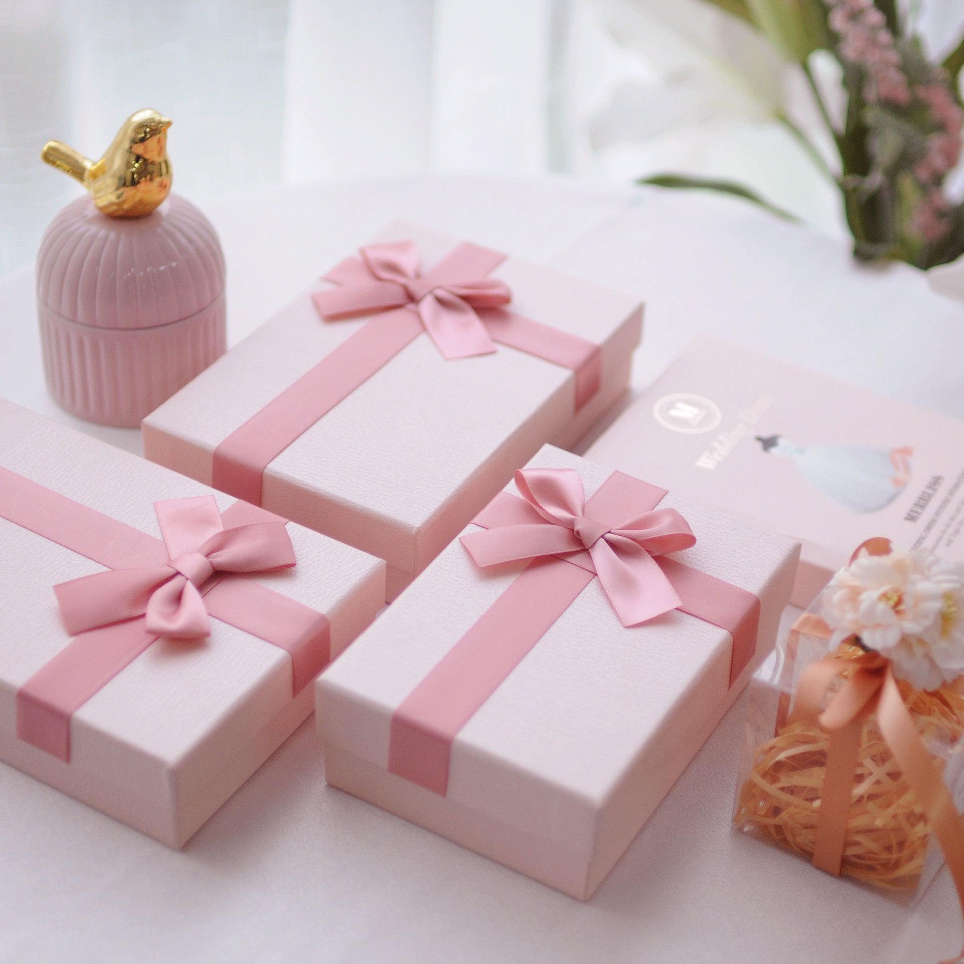 Caja de Regalo Simple de Alta Gama Personalizada con Tapa Cielo y Tierra, Caja de Embalaje, Souvenir de San Valentín, Caja de Papel para Joyería con Lazo