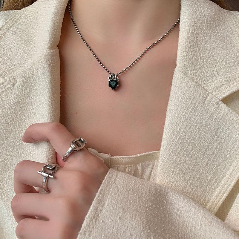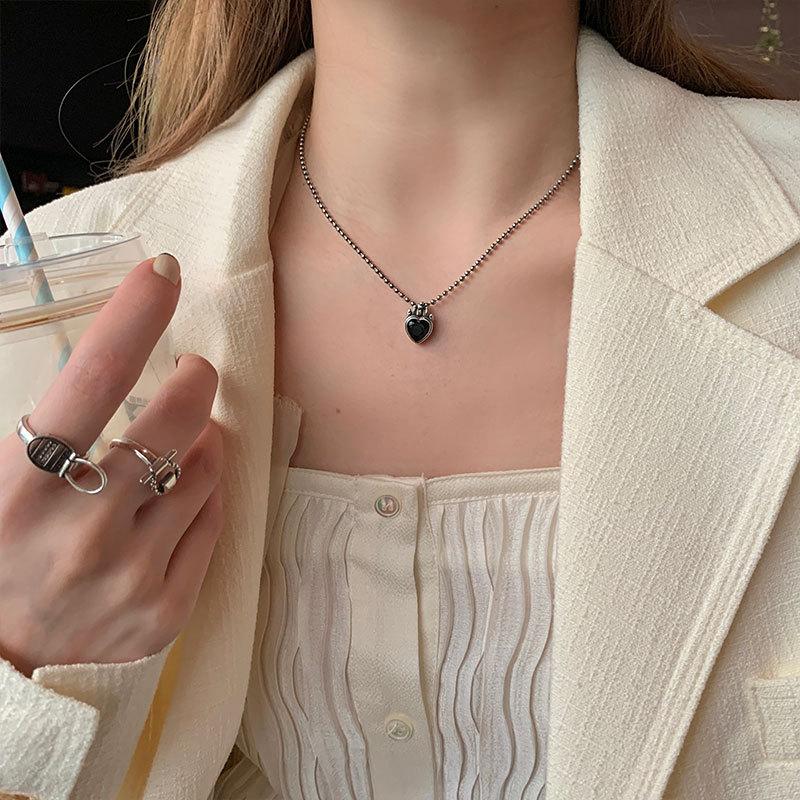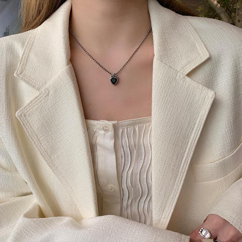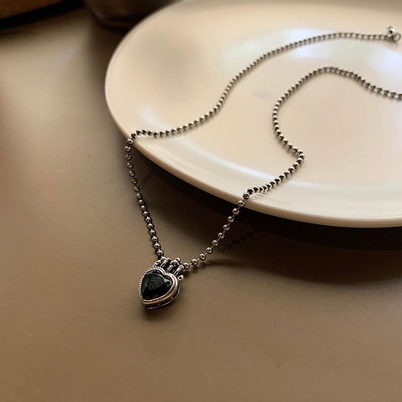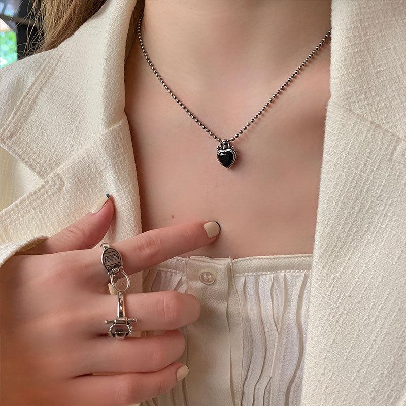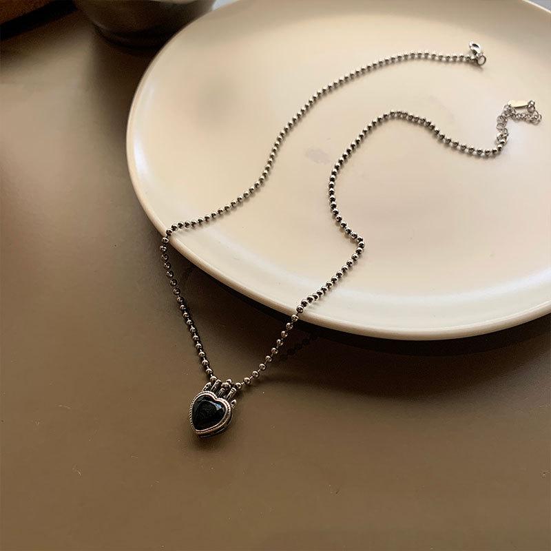 Collar de plata de ley 925 con cadena de cuentas encantadora retro Dongdaemun de Corea del Sur para mujer, estilo retro frío, simple y combinable.