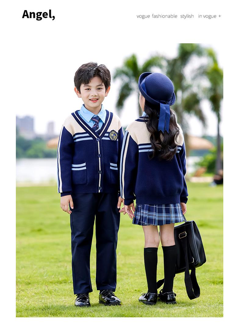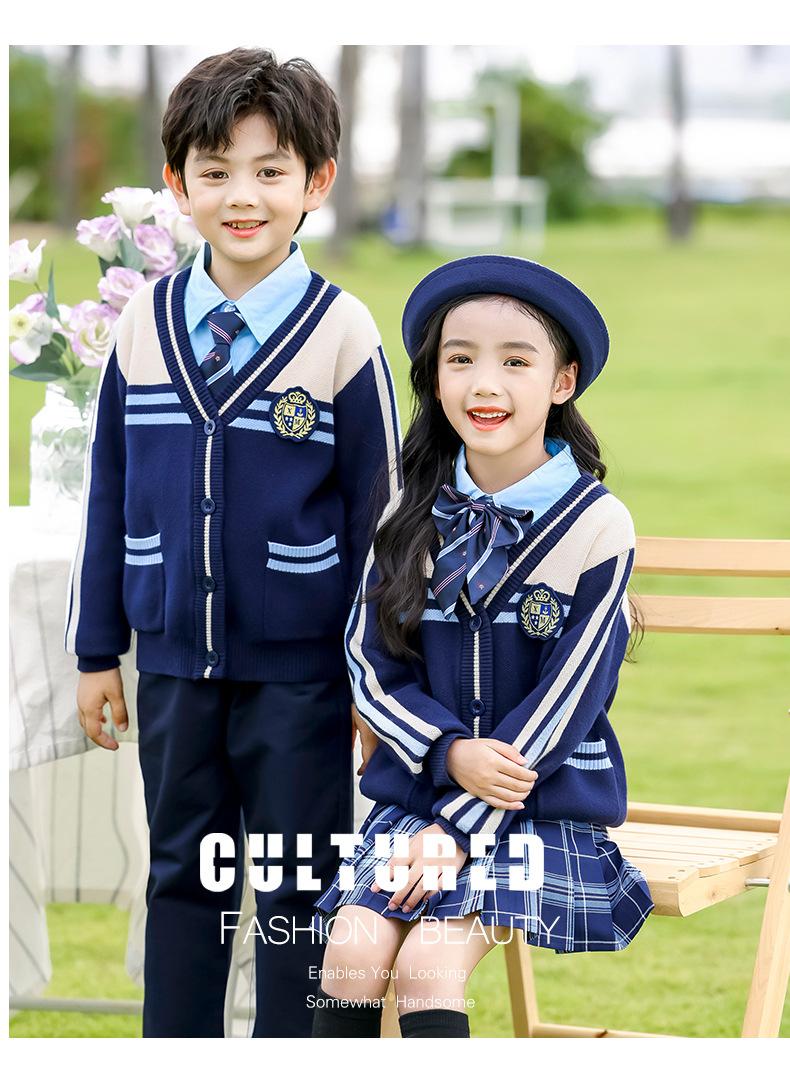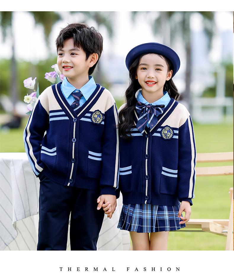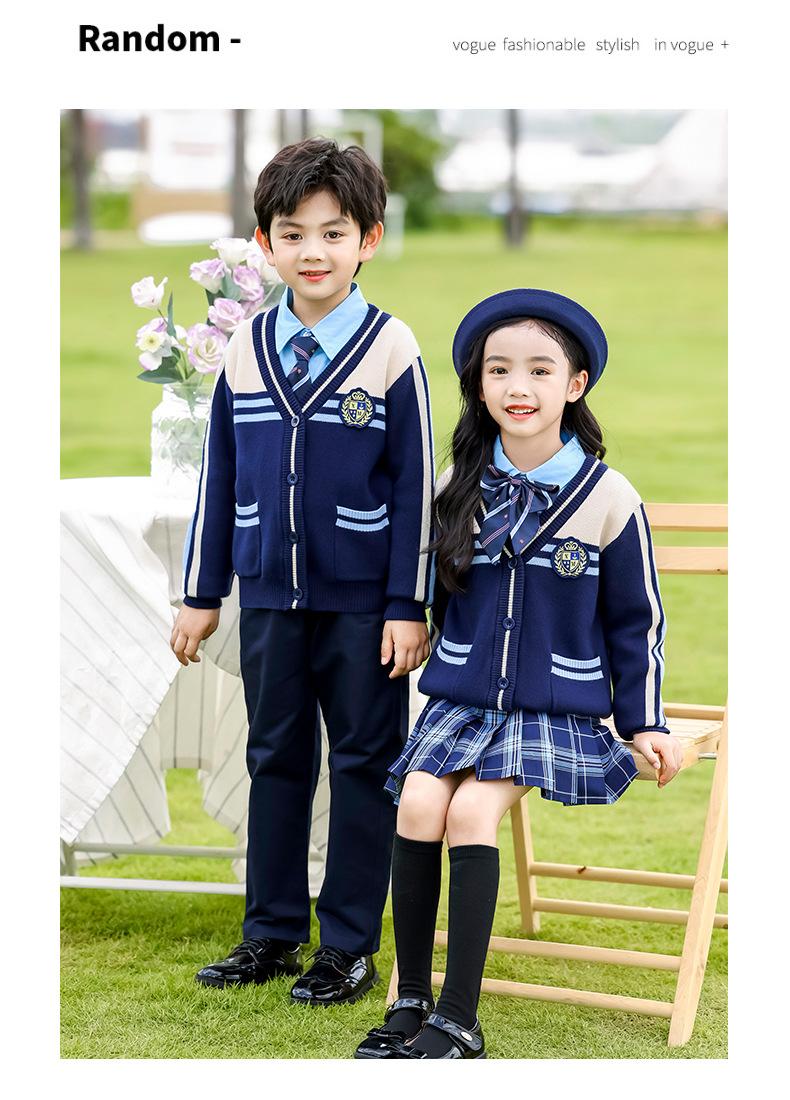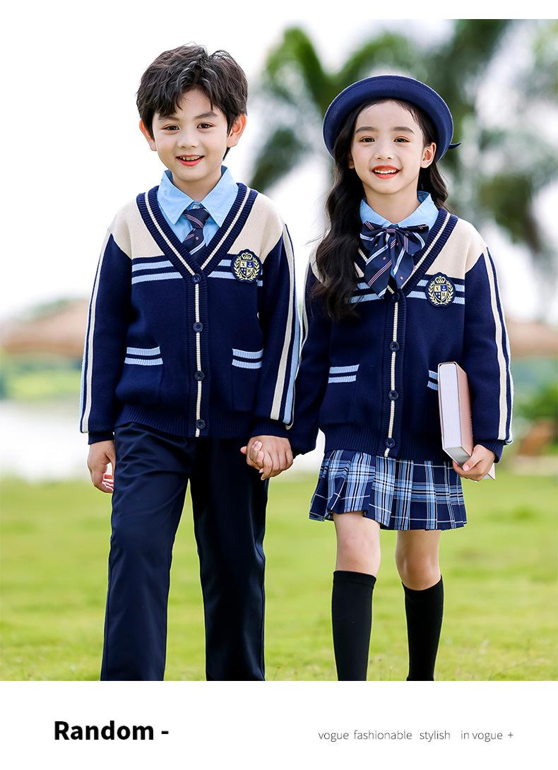 2023 nueva ropa de jardín de infantes, uniforme escolar de otoño e invierno, uniforme escolar para niños, uniforme de clase, traje de estudiante de punto de estilo británico