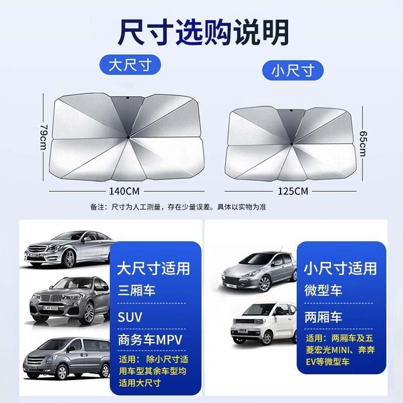 Large parasol [for sedan/SUV/MPV]], small size parasol [for compact/hatchback]]