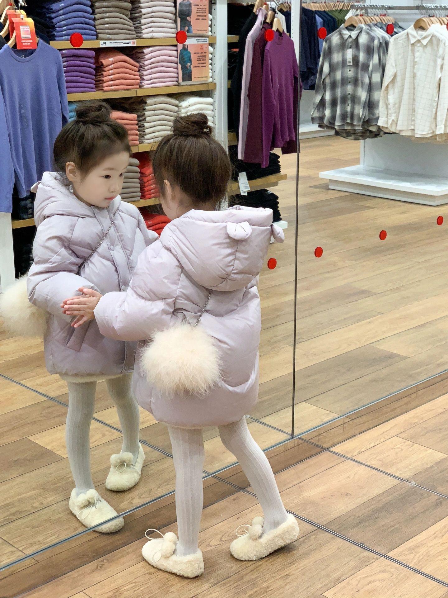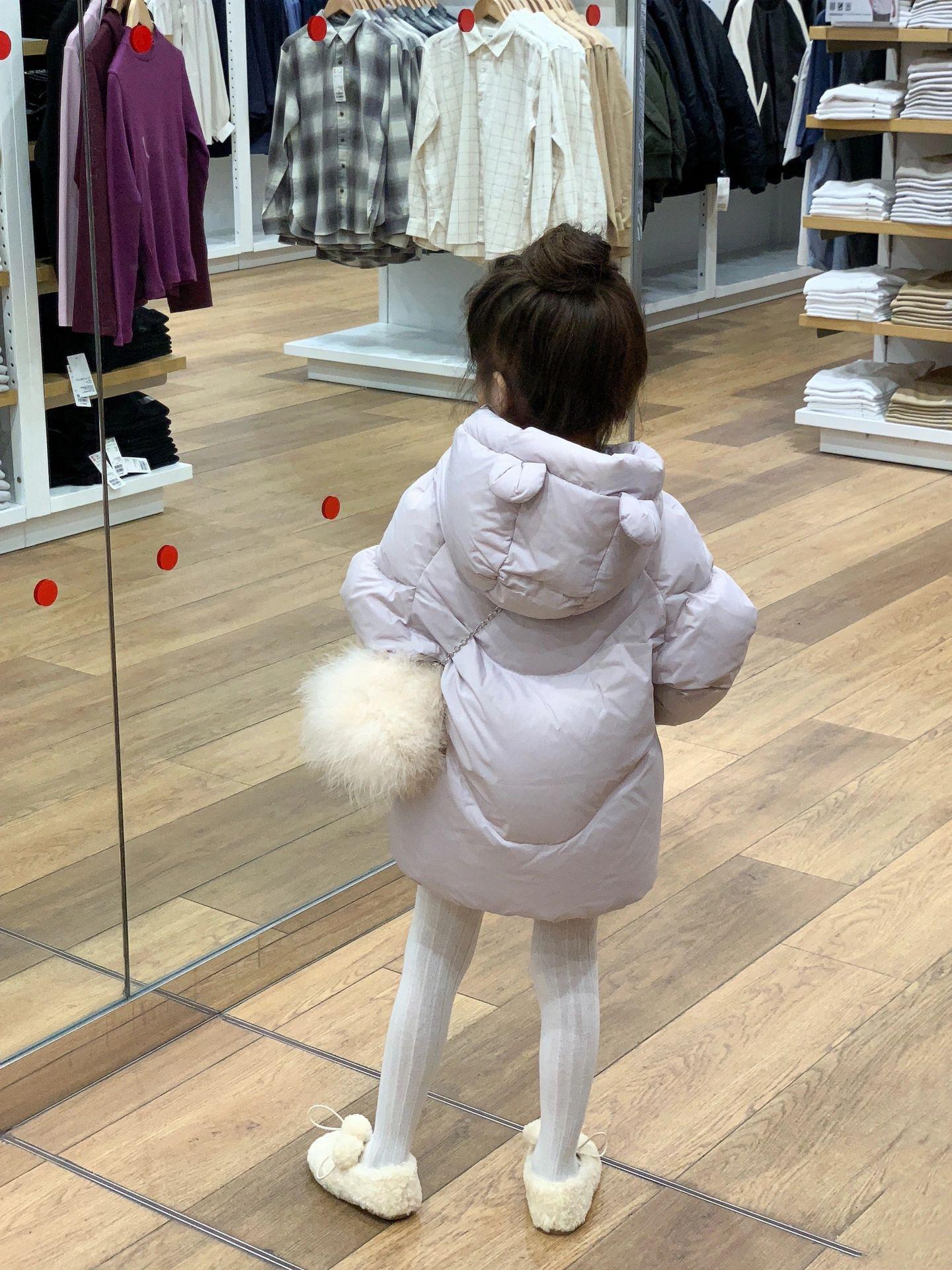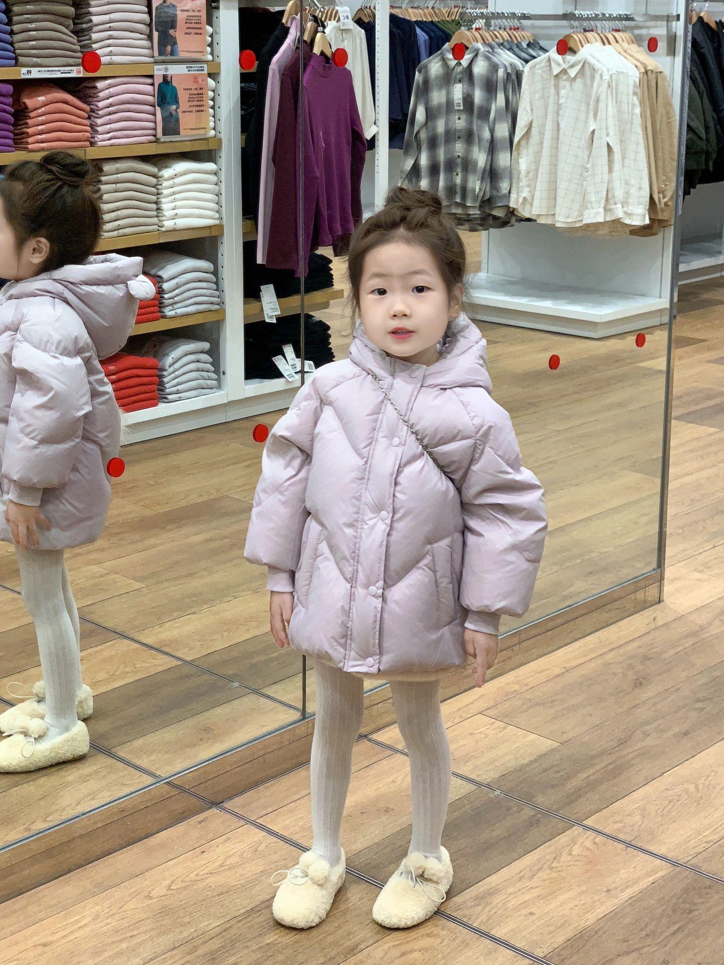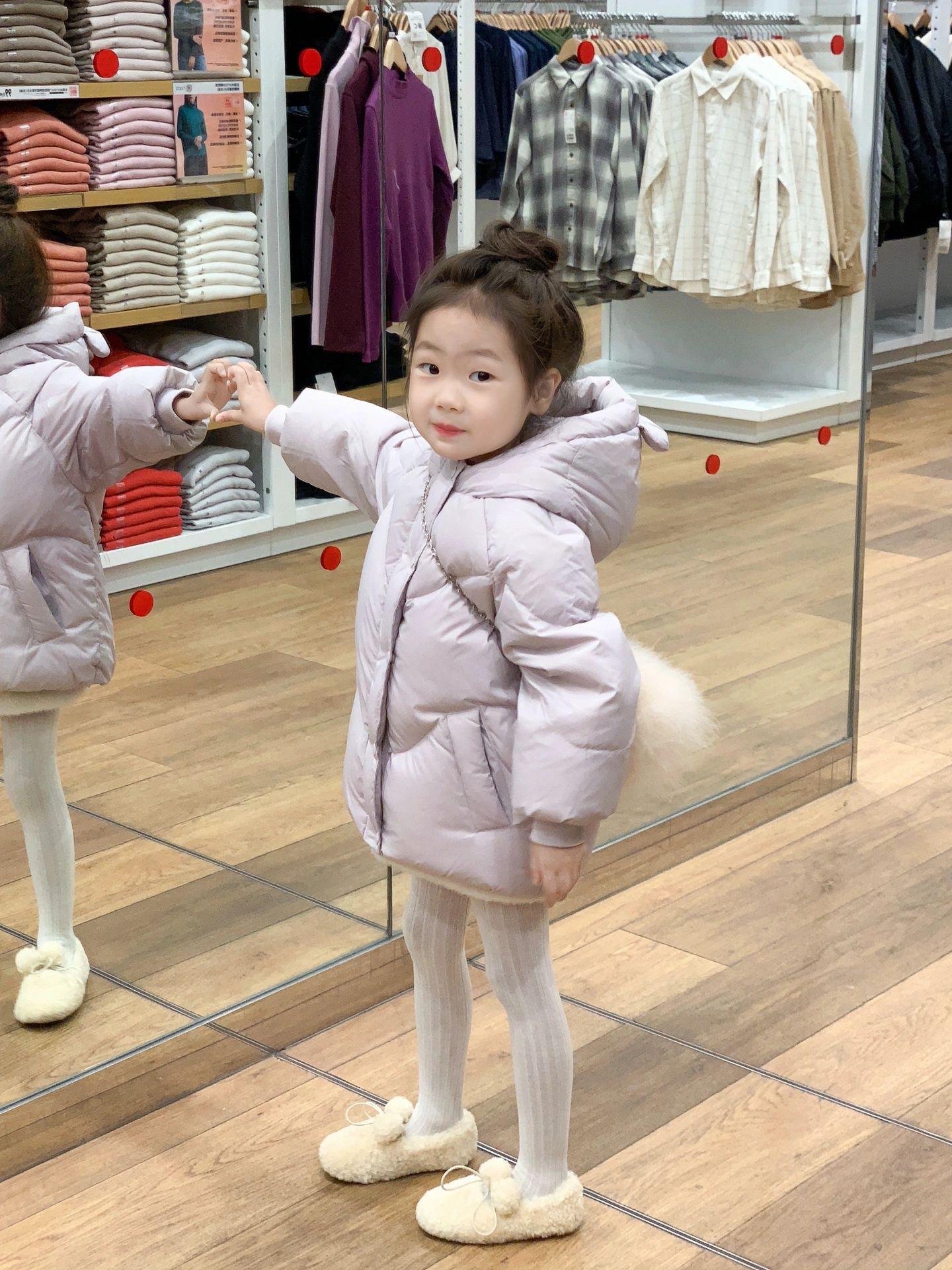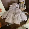Versión coreana de ropa para niños 2024 nuevo invierno niñas 90 plumífero con capucha de plumón de pato blanco abrigo grueso a prueba de tres mareas para niños