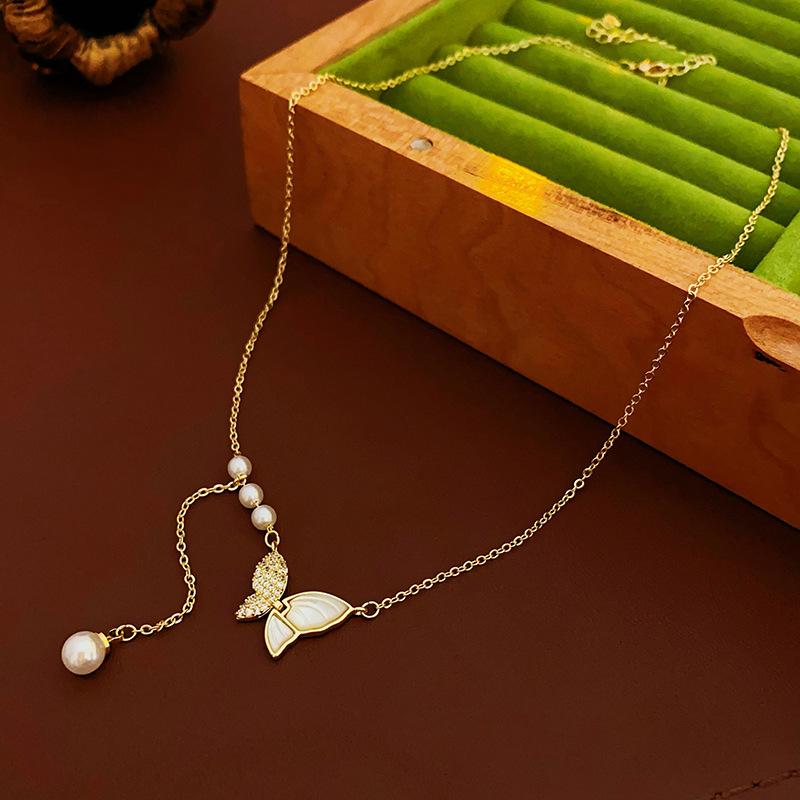Collar de perlas de mariposa fritilaria de circón electrochapado en oro real, exquisita cadena para clavícula que combina con todo, collar de temperamento de lujo ligero para mujer al por mayor