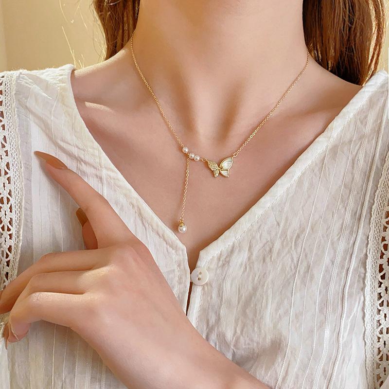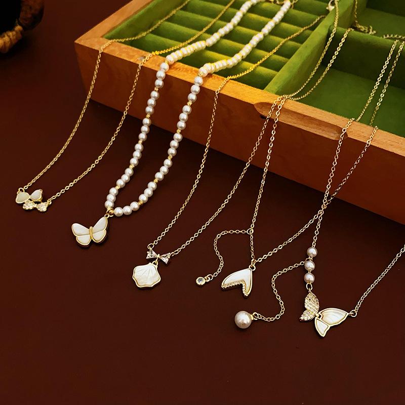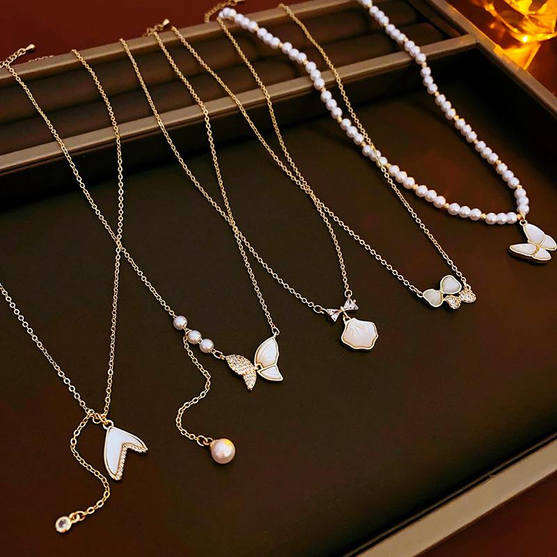 1#Necklace-gold-pearl butterfly, 2#Necklace-gold-butterfly, 5#Necklace-gold (real gold plating), 8#Necklace-go...