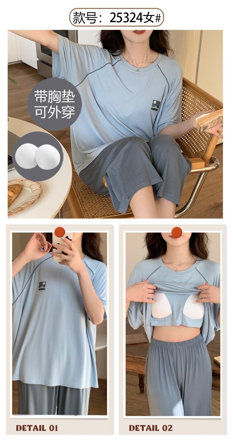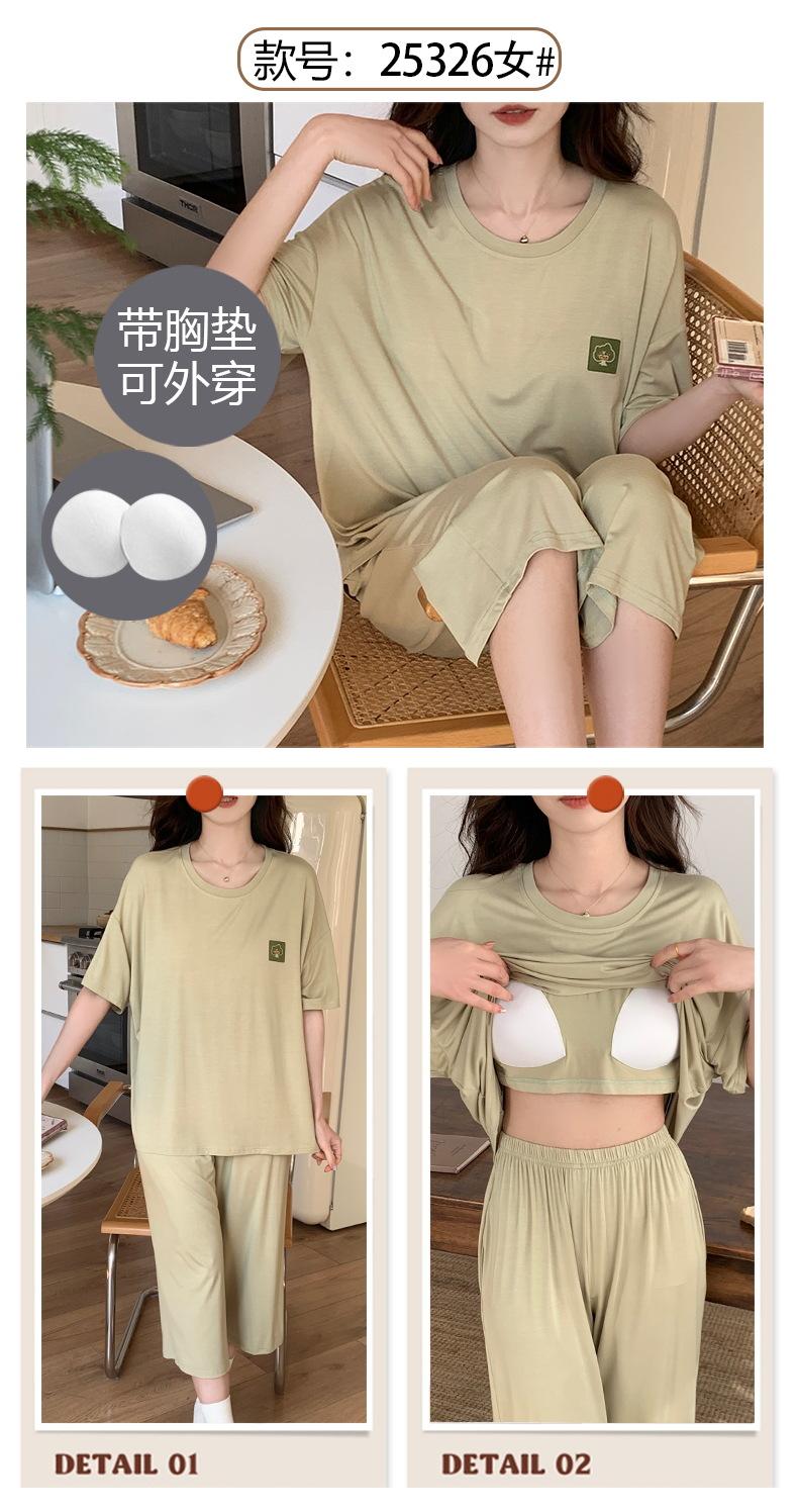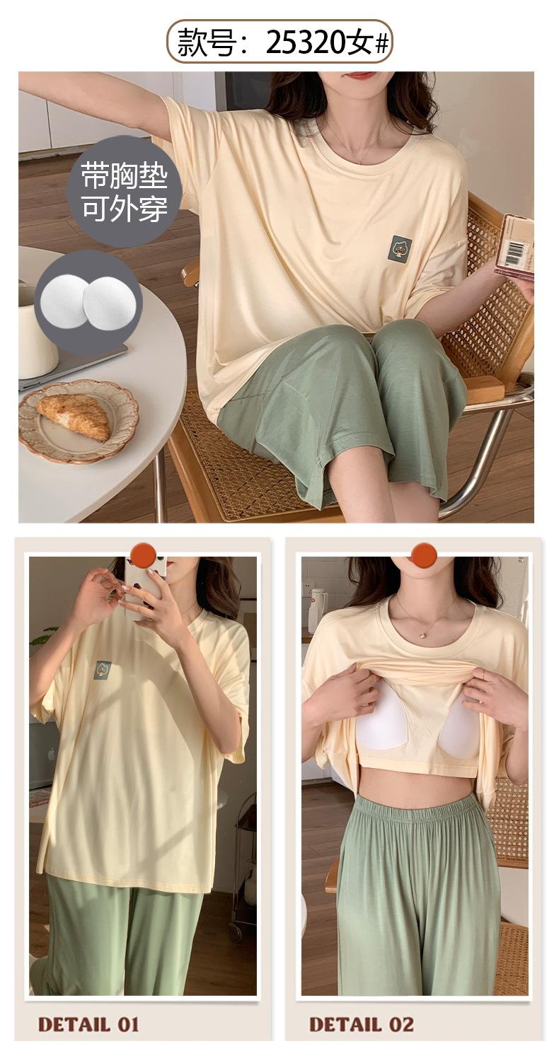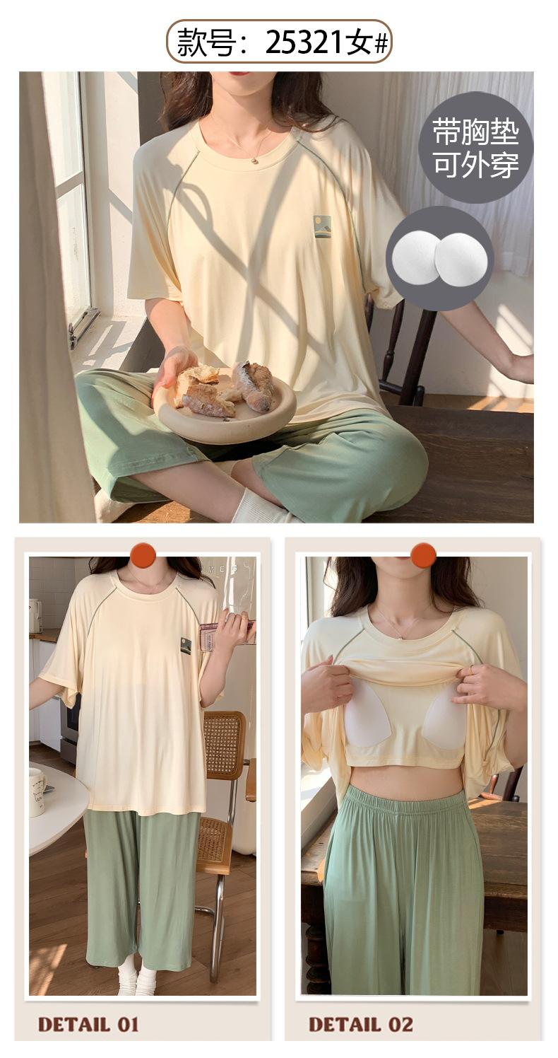 Pijama de modal para mujer, pantalones cortos de verano de manga corta con almohadilla para el pecho, sujetador sin costuras para mujer, ropa de abrigo, traje para el hogar