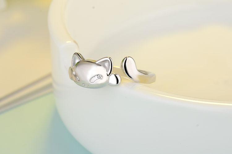 Anillo de Gato Lindo para Mujer Estilo Coreano Anillo Creativo de Moda Anillo de Cola