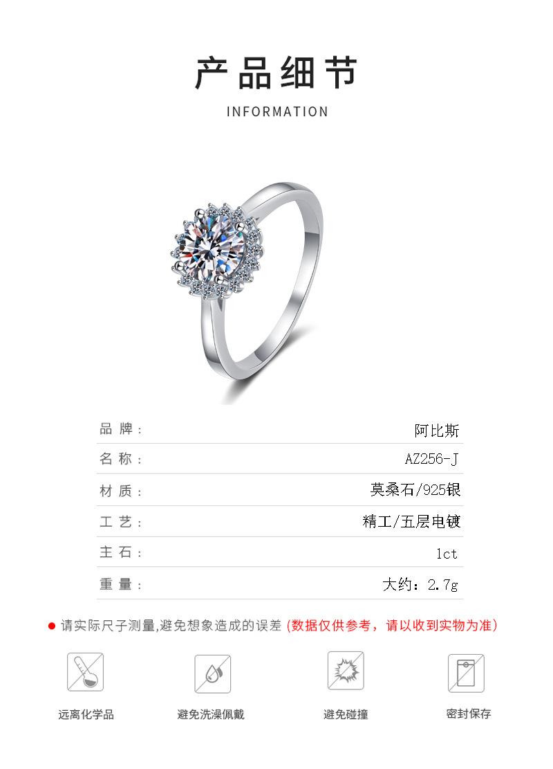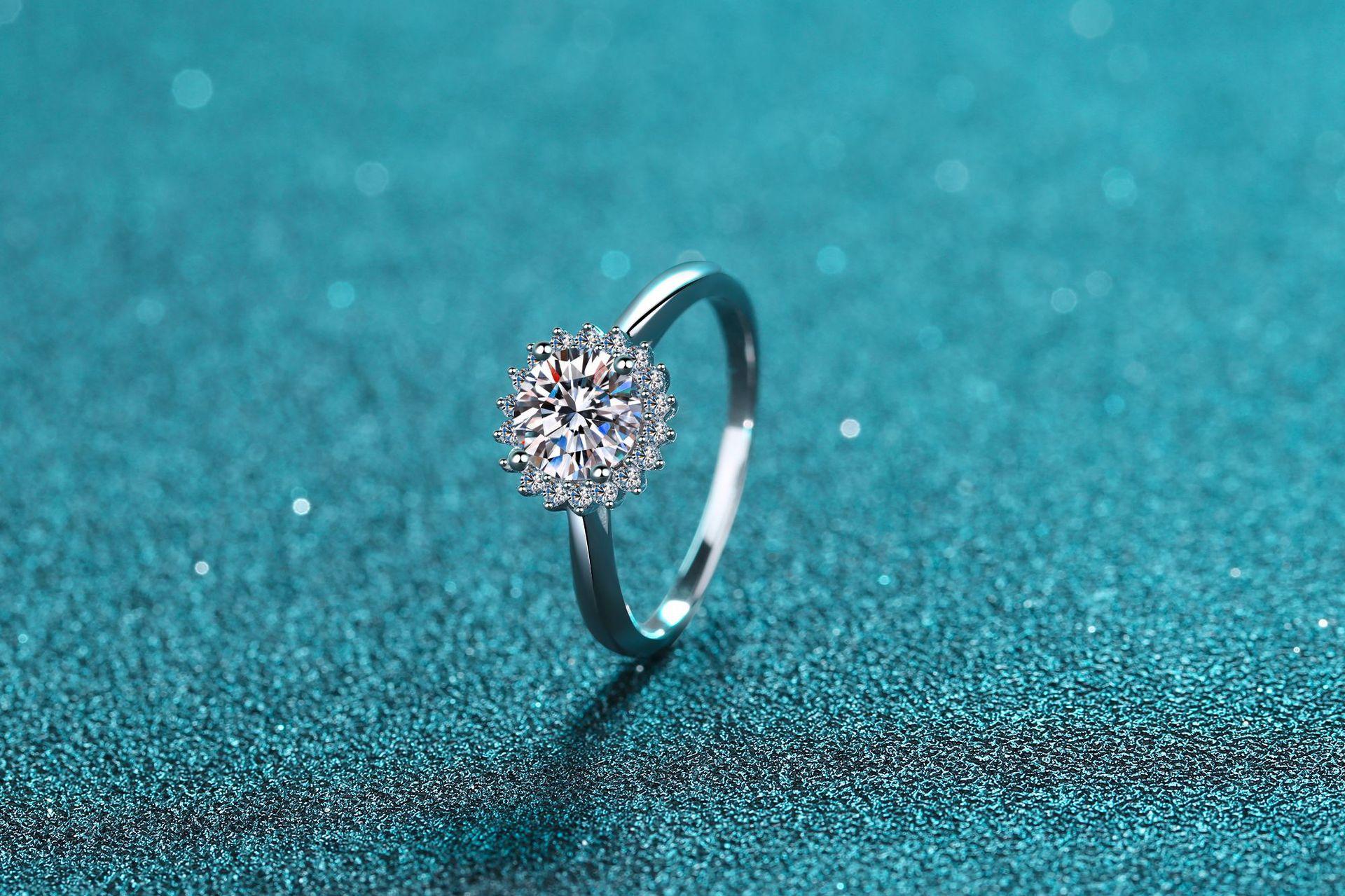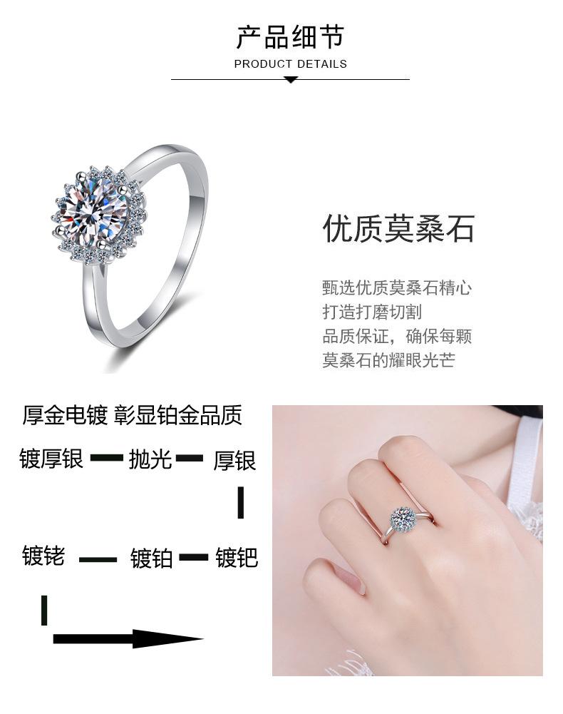 Anillo de plata esterlina S925 para mujer, anillo de dedo con moissanita y girasol, platino pt950, suministro directo de fábrica, generación mayorista