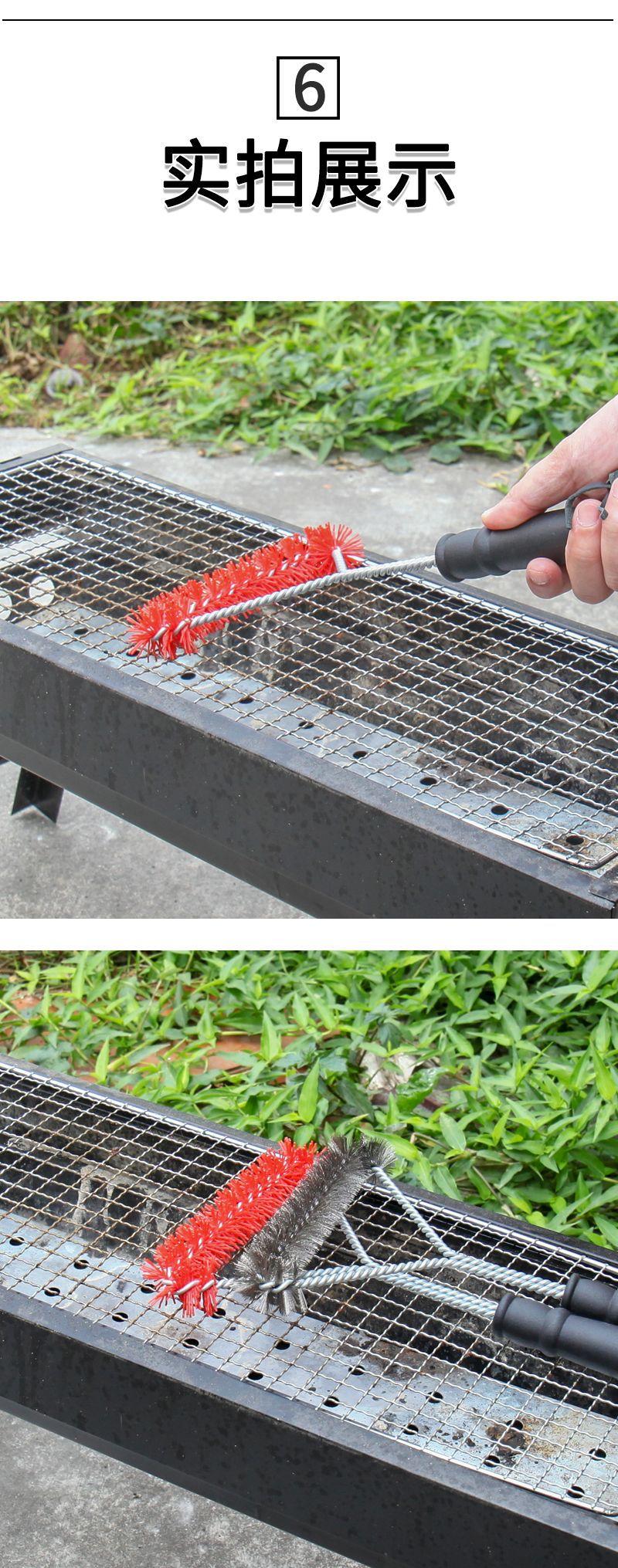 Cepillo de limpieza para barbacoa triangular de una sola capa con mango largo Rui Ming Cepillo para barbacoa Cepillo para parrilla Cepillo de alambre de acero