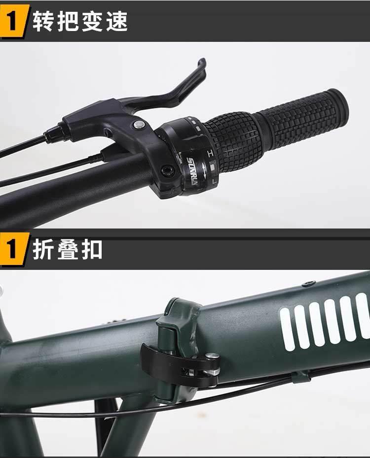 Black - 20inch -7 speed spoked wheels, Military green - 20inch -7 speed spoke wheel