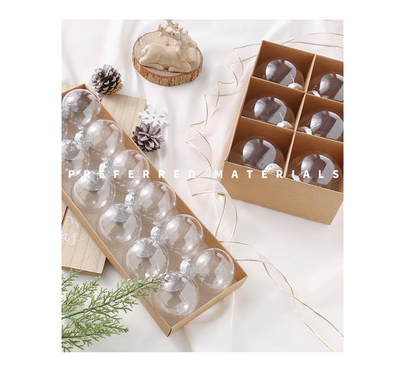 Nuevas decoraciones navideñas transfronterizas 12 bolas navideñas transparentes de PET, caja de regalo, adornos para árbol de Navidad, colgante