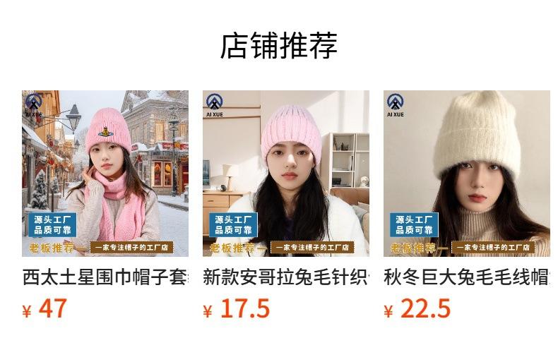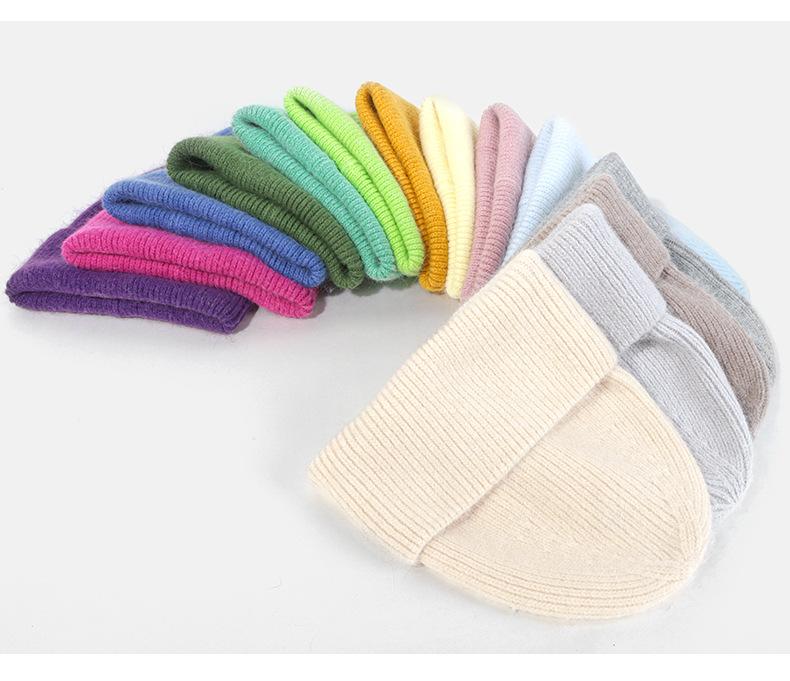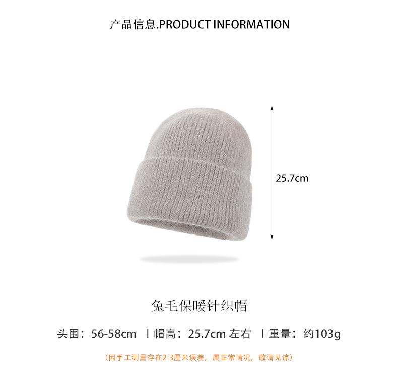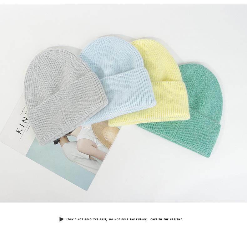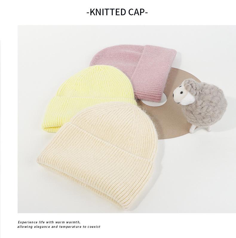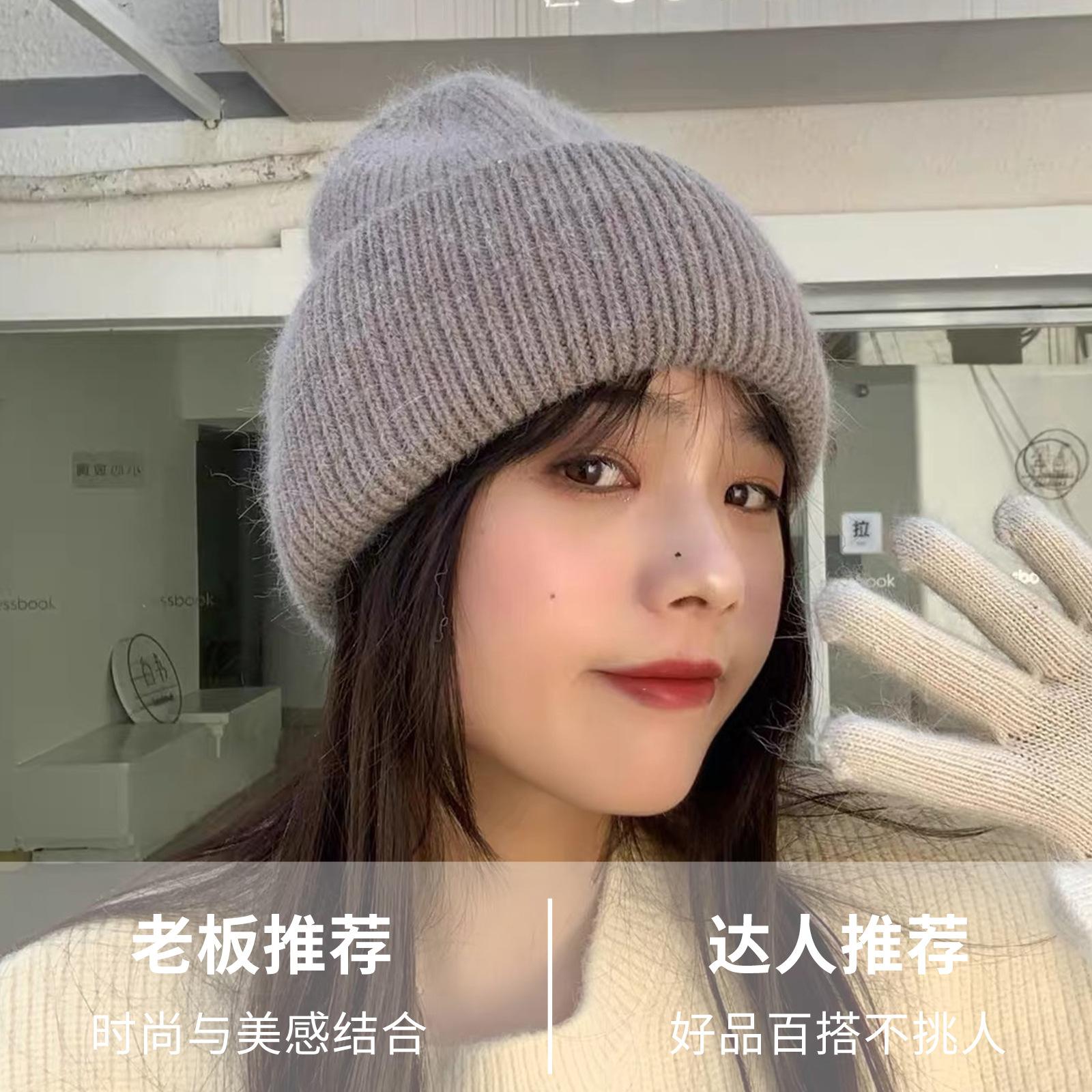Gorro de punto grueso con pelo de conejo para mujer, estilo coreano, de moda, para otoño e invierno, estilo japonés, cálido, de lana rizada.